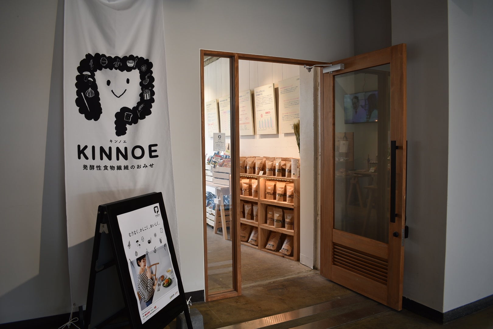 KINNOEが入居するHOME/WORK VILLAGEの地にかつてあった池尻中学校が開校したのは1955年。その頃の日本の食卓には、穀物、豆類、芋類、海藻などが並び、日々の食事の中で食物繊維を自然と摂取できていました。しかし、経済が発展し食が豊かになるに連れて、食物繊維の摂取量は減少。今では、世界保健機関(WHO)が定める目標量に到底足りず、特に発酵性食物繊維は大きく減っています。あの頃のような摂取量を目指し、学ぶことから始めてみようという想いを込め、HOME/WORK VILLAGEにてオープンすることにしました。 “発酵性食物繊維を摂る食生活が、日常になること。”を目指して発信してまいります。