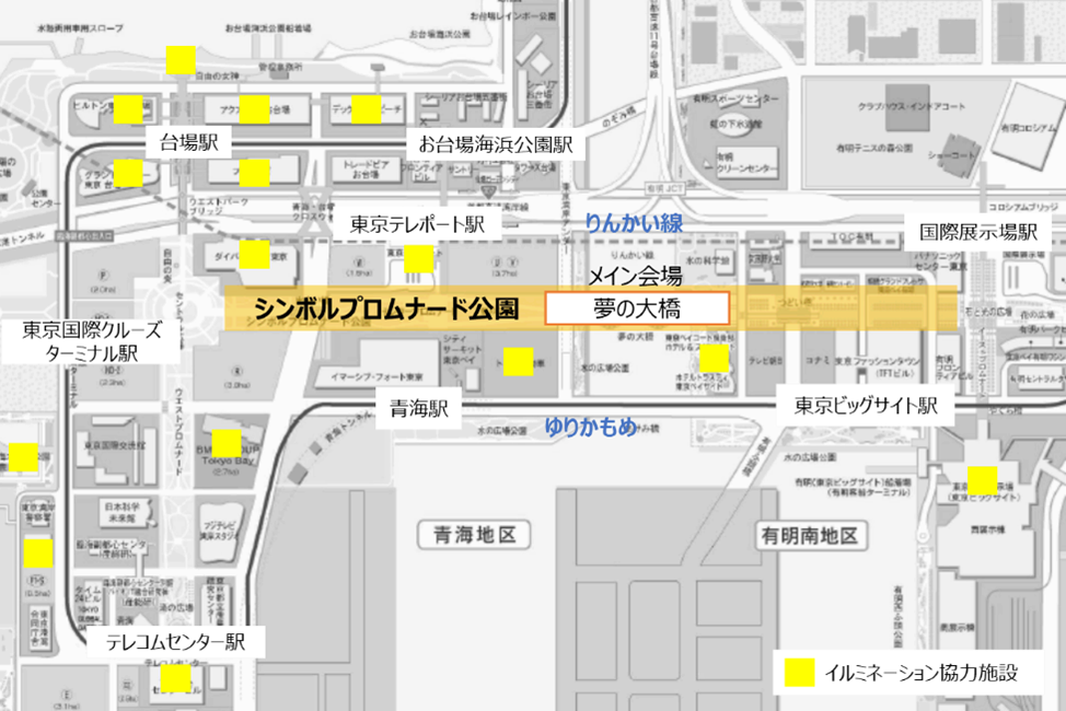 ODAIBAイルミネーション実行委員会東京都、(株)東京臨海ホールディングス、東京港埠頭(株)、(株)東京ビッグサイト、