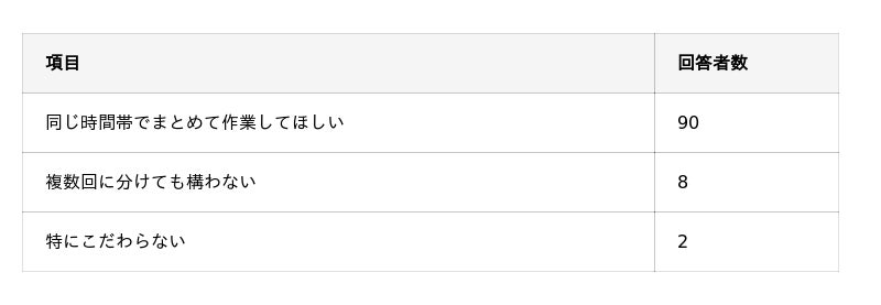 ・エアコンクリーニングの作業を8時~16時までの間に希望する人が8割以上。