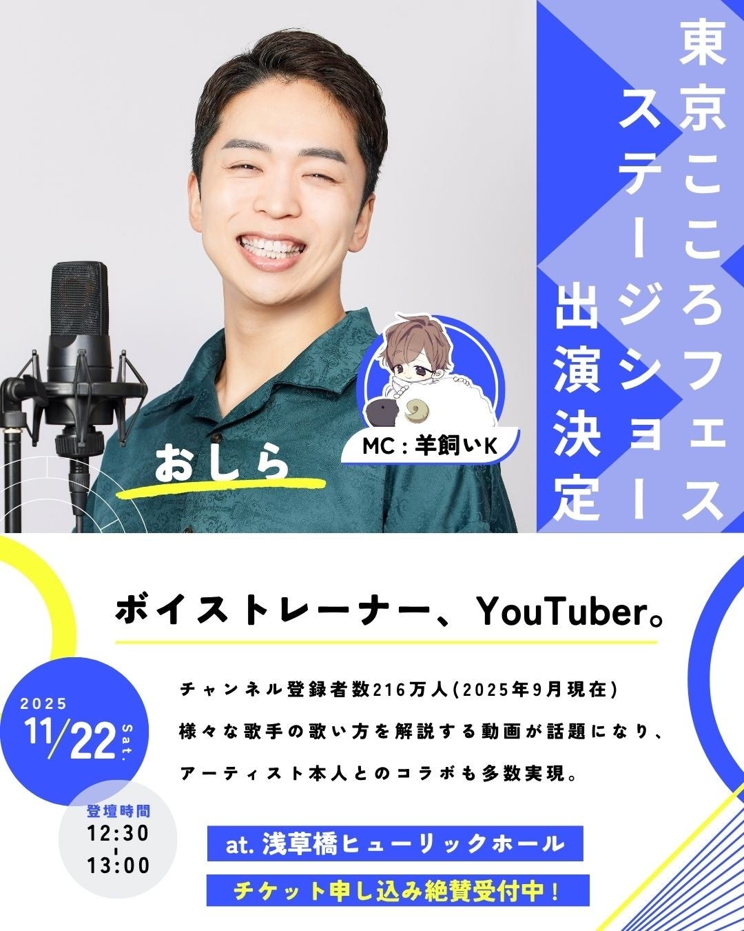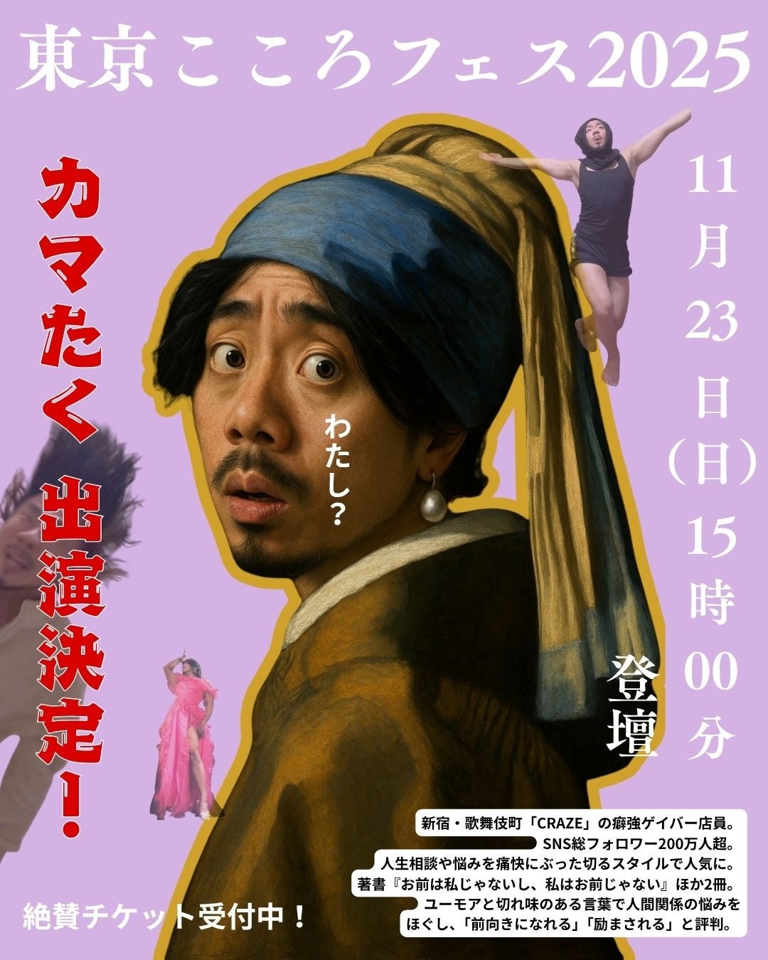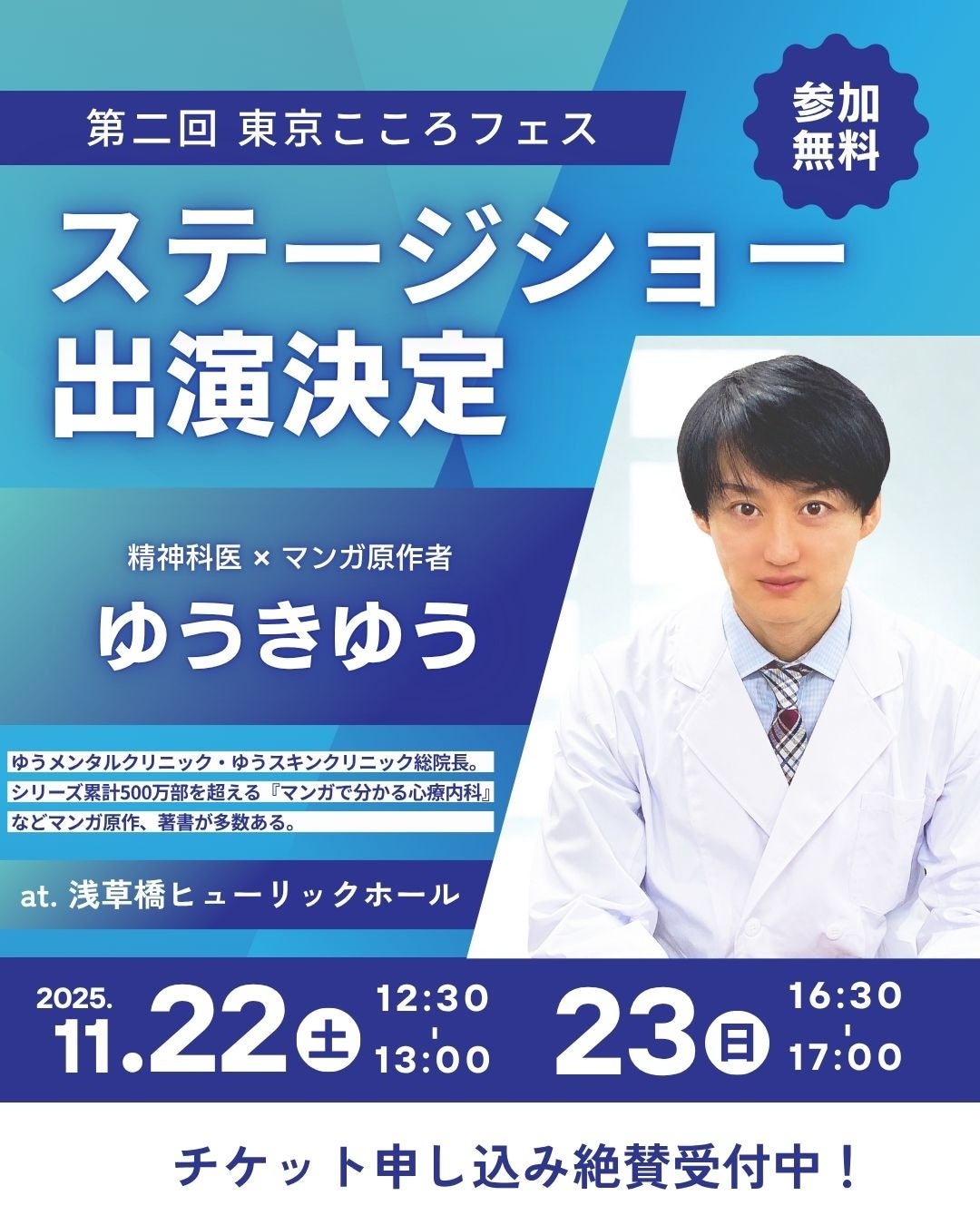- 名称:第2回東京こころフェス- 日時:2025年11月22日(土) 12:00~18:00/23日(日) 10:30~17:30 ※最終入場30分前