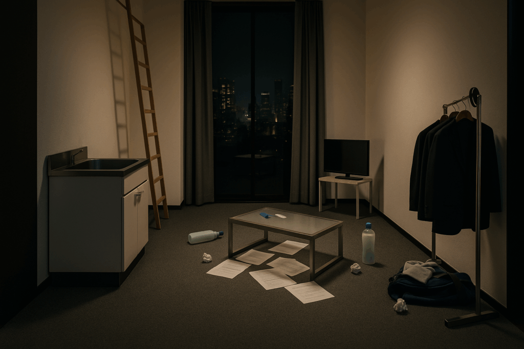 住人がいなくなる部屋ある研究によると、自ら死を選んだ人の多くが「衝動が高まってから10分以内」に行動していたといいます。たった10分の間に、手の届く場所に“手段”があったかどうか。それが「生と死の分かれ道」になるのです。本展示では、実例や自殺対策研究の結果をもとに「実際に死を選んでしまった患者さん」の部屋を再現しております。