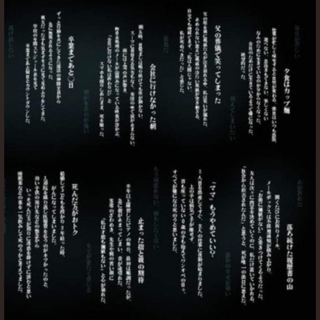死にたい理由展「生きるのをやめたい」と考えた方々の実際のエピソードを展示します。自殺の理由は人によって様々です。あなたが何とも思わない出来事でも、