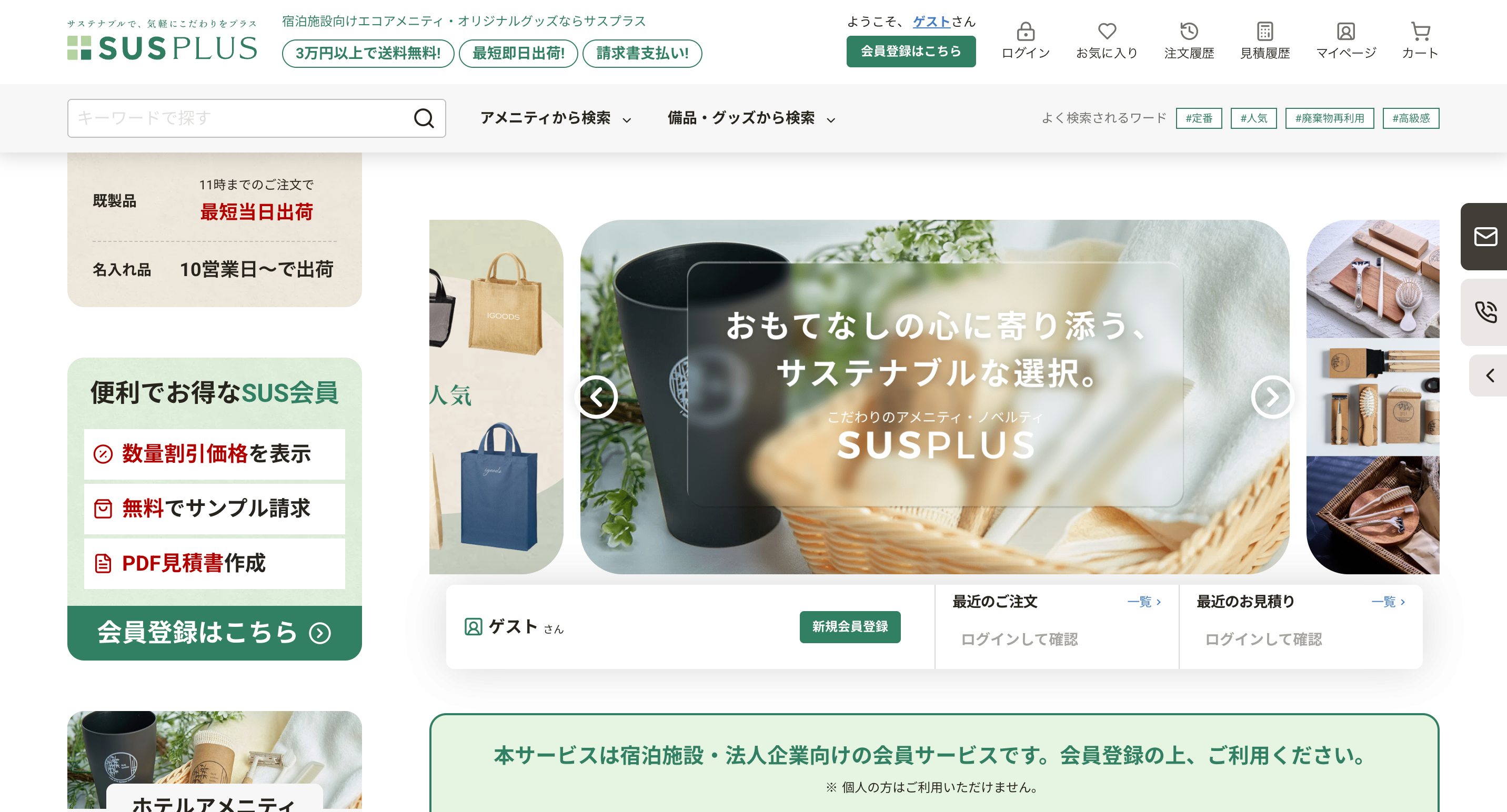 ▼ホテル向けエコアメニティ・グッズ販売サイト「SUSPLUS(サスプラス)」