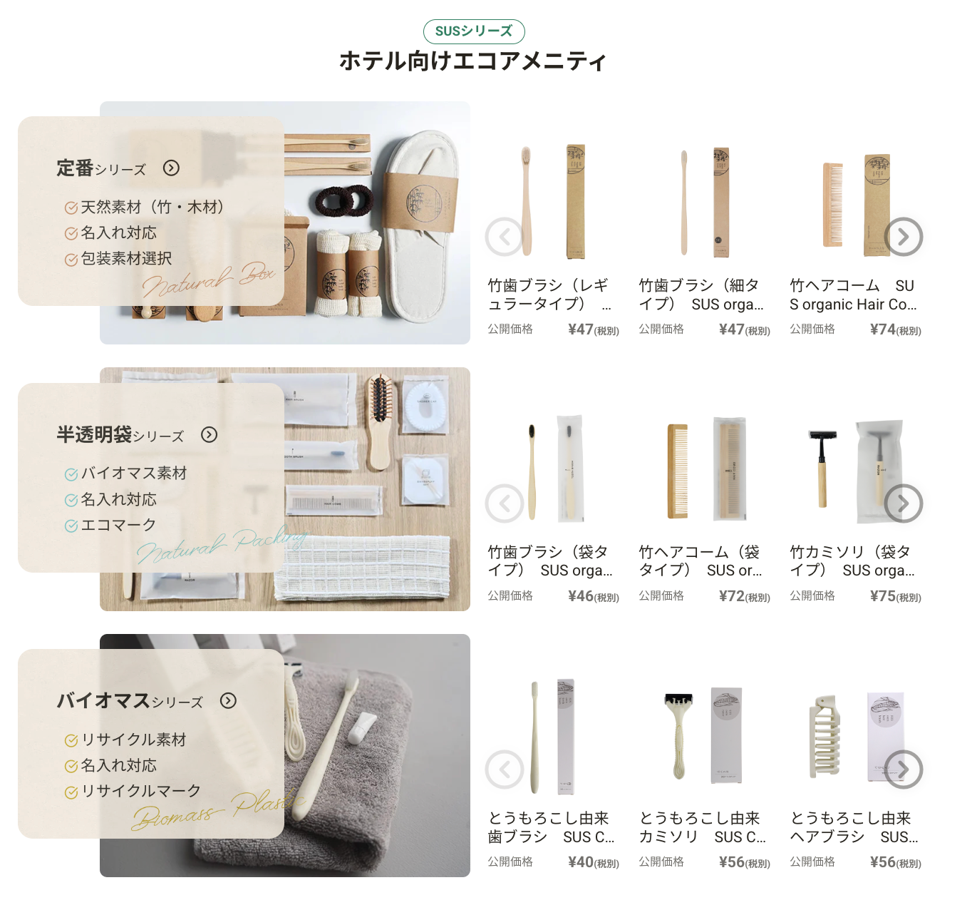 ホテル・旅館専用アメニティ・グッズを扱うECサイト「SUSPLUS」オープン