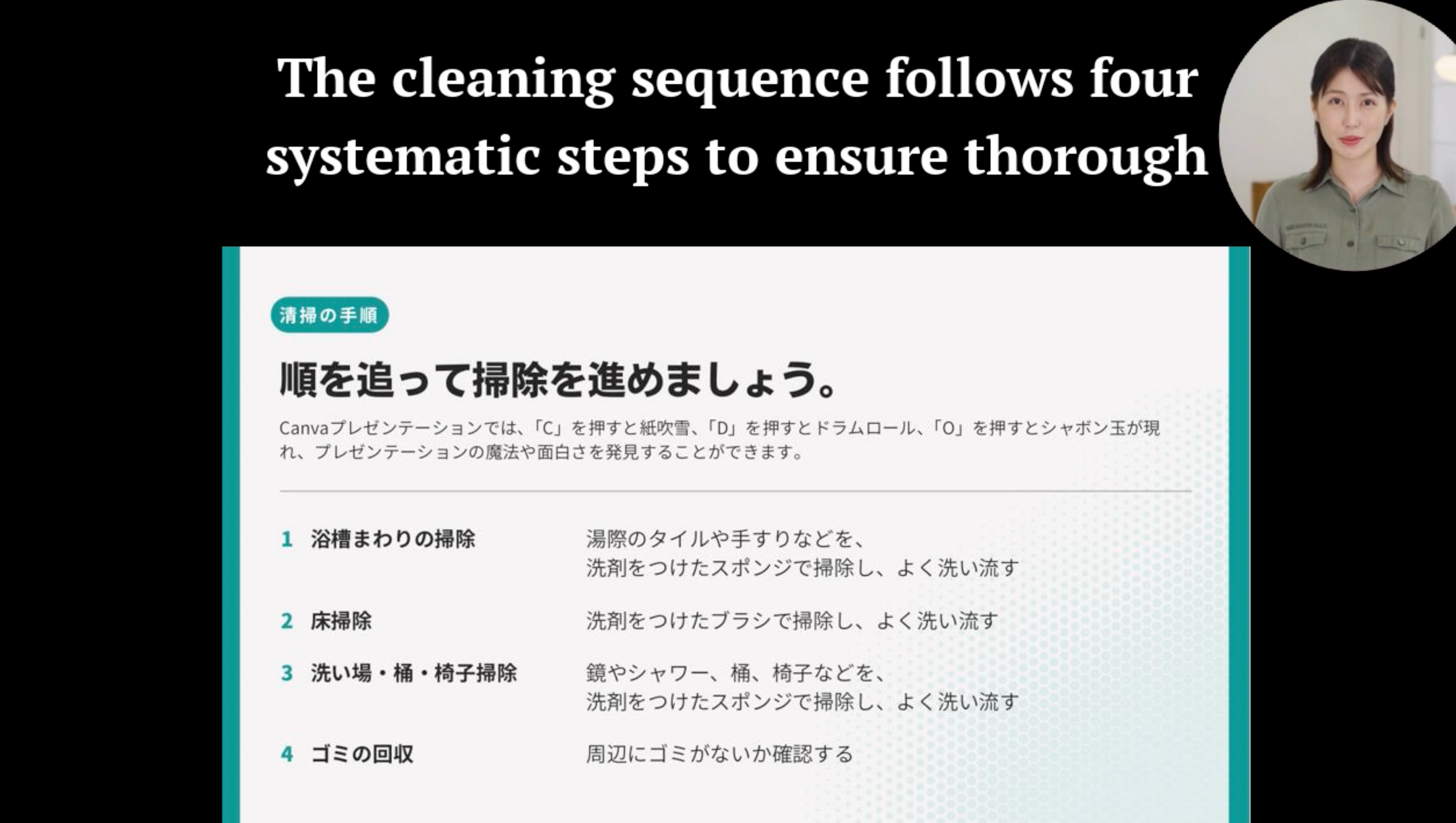 日本語版のマニュアルをもとにして、即座に英語の解説動画を生成。日本で働く外国人労働者はもちろん、グローバルに展開する企業においては、海外拠点の外国人の従業員が、新しい業務知識をタイムラグなく習得できます。テキストベースのマニュアルでは伝わりにくい複雑な操作や微妙なニュアンスも、視覚と聴覚に訴える動画で直感的に理解を促し、習熟度のバラつきを防ぎます。