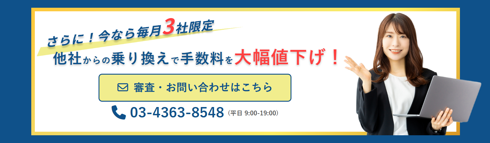 ビズネコファクタリングではサービスリリースを記念して、毎月3社限定として、他社からの乗り換えで手数料の値下げが可能です。