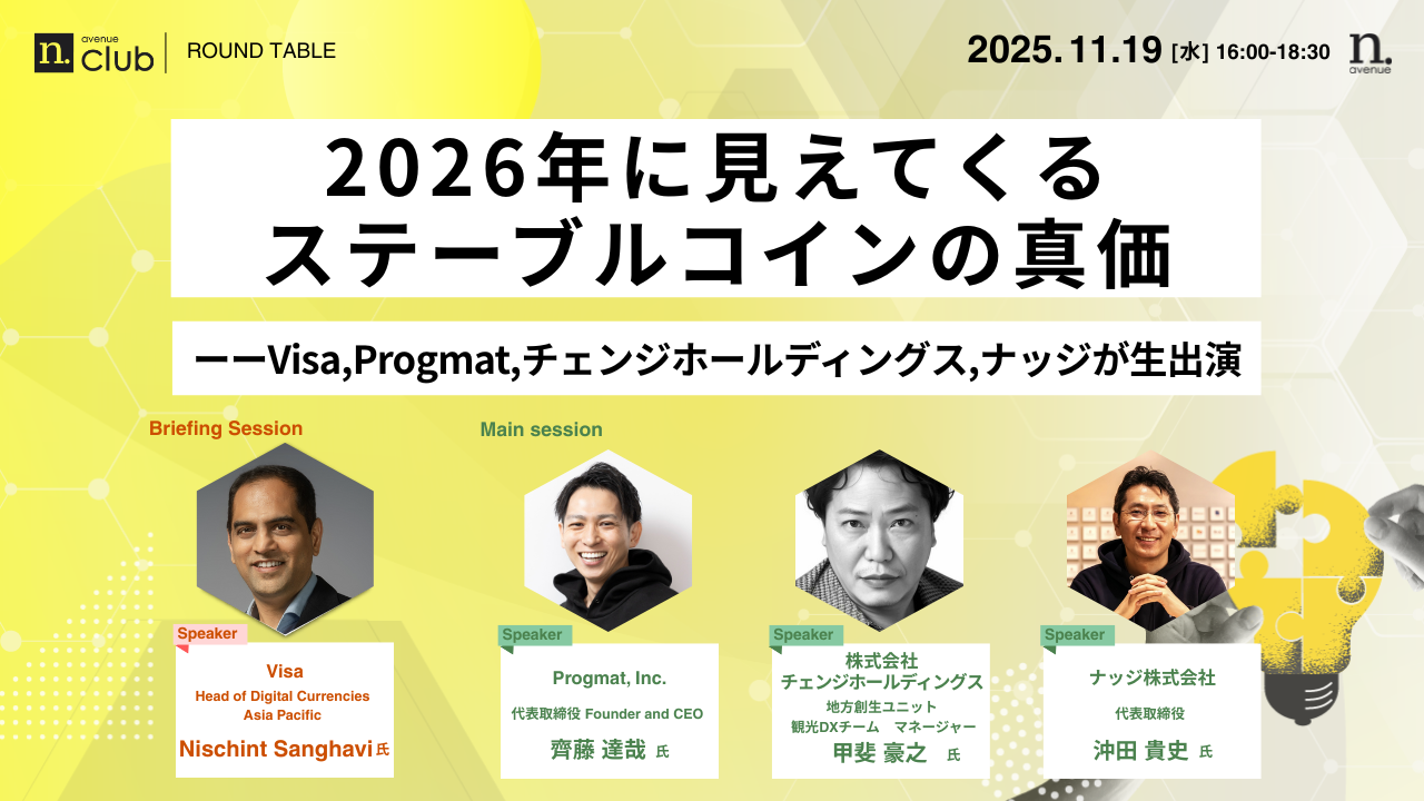 【11月19日開催】国内最大級・法人向けWeb3ビジネスコミュニティ「N.Avenue club」ラウンドテーブルのトライアル参加枠募集