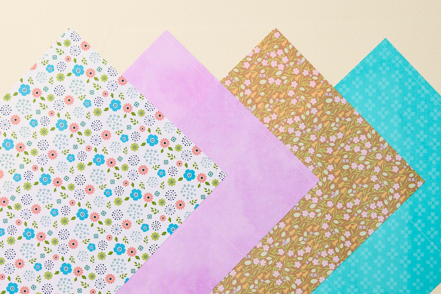 4つの柄の色紙(いろがみ)つき!2つの柄の組み合わせを選んでくす玉おりがみを完成させましょう。