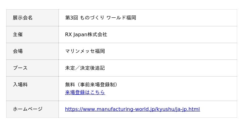 【出展情報】「第3回 ものづくりワールド福岡」に出展【APPLE TREE株式会社】