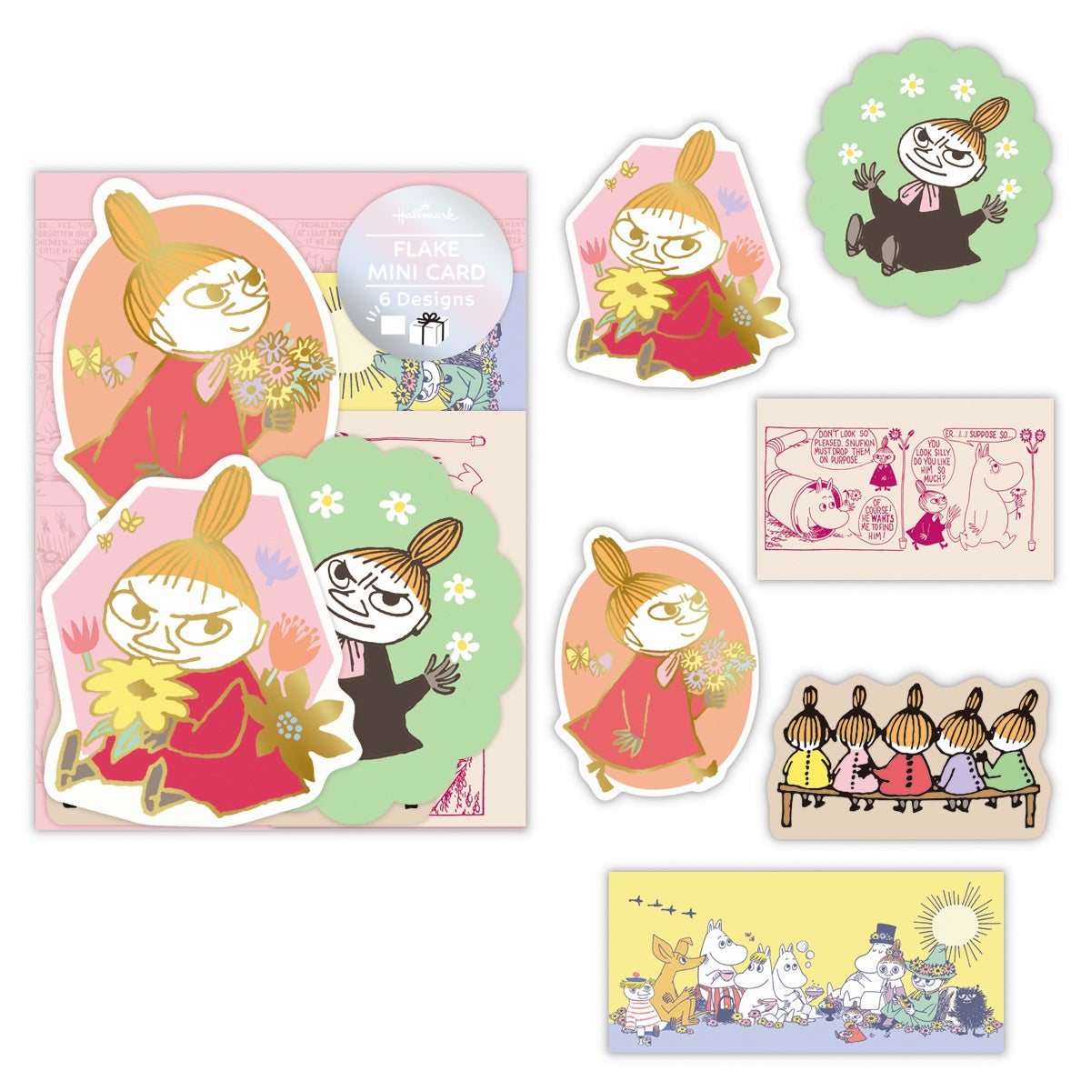 「フレークミニカード」は、すべて異なる絵柄と形で構成されたフレークタイプのメッセージカードです。1パッケージに6柄6枚をセットし、キャラクターの魅力が際立つ大きめのダイカットデザインを中心に、Peanuts(TM)とムーミンの計4種を展開しました。