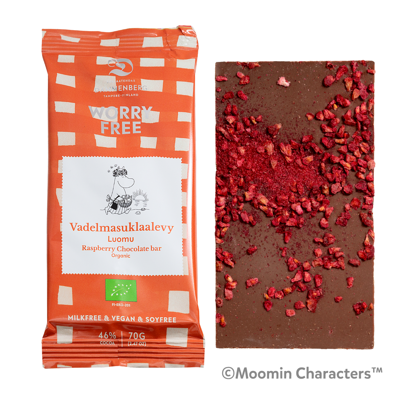 ムーミン 有機ラズベリーチョコレート カカオ46% [70g]価格:1280円(税抜)