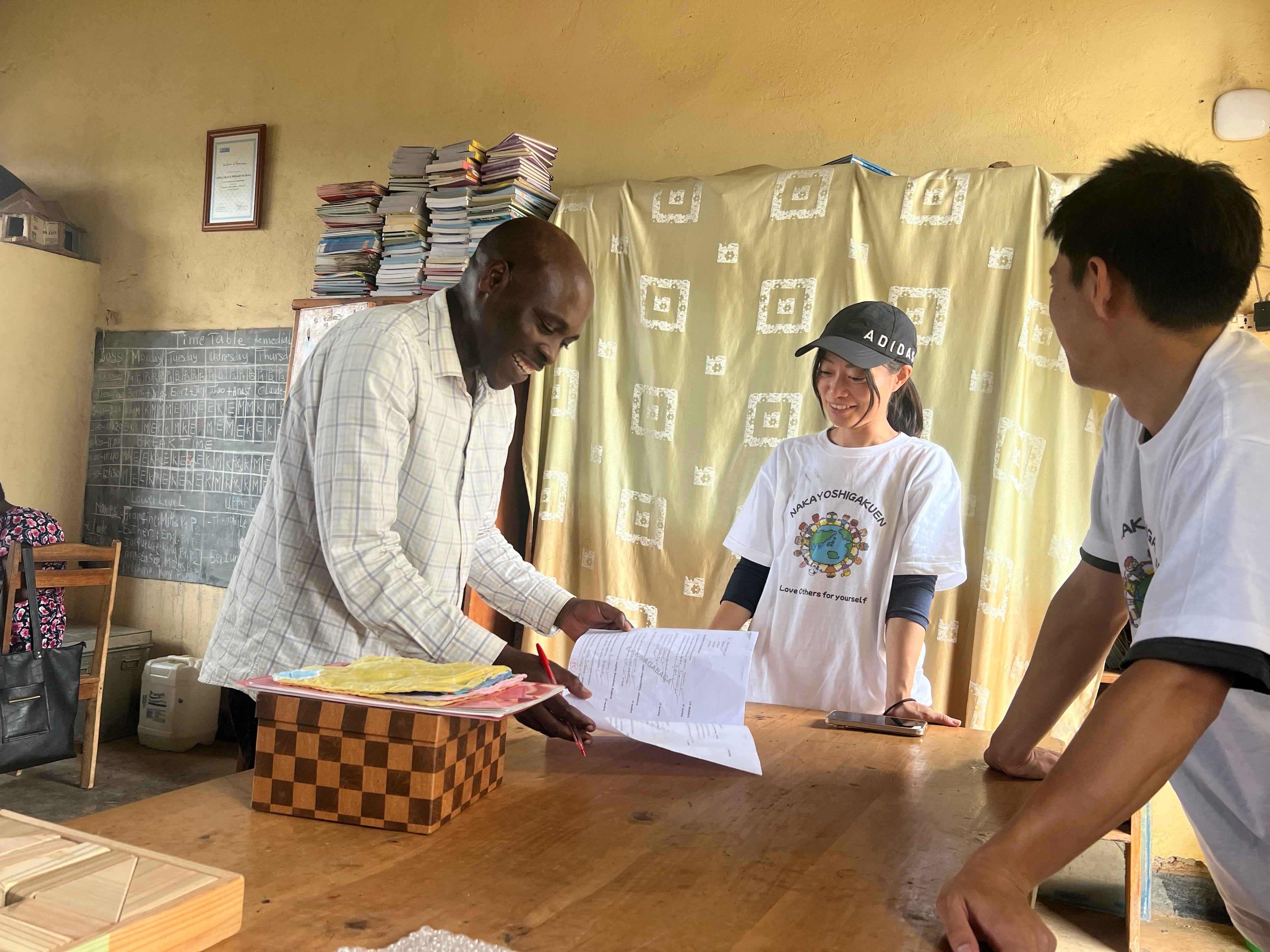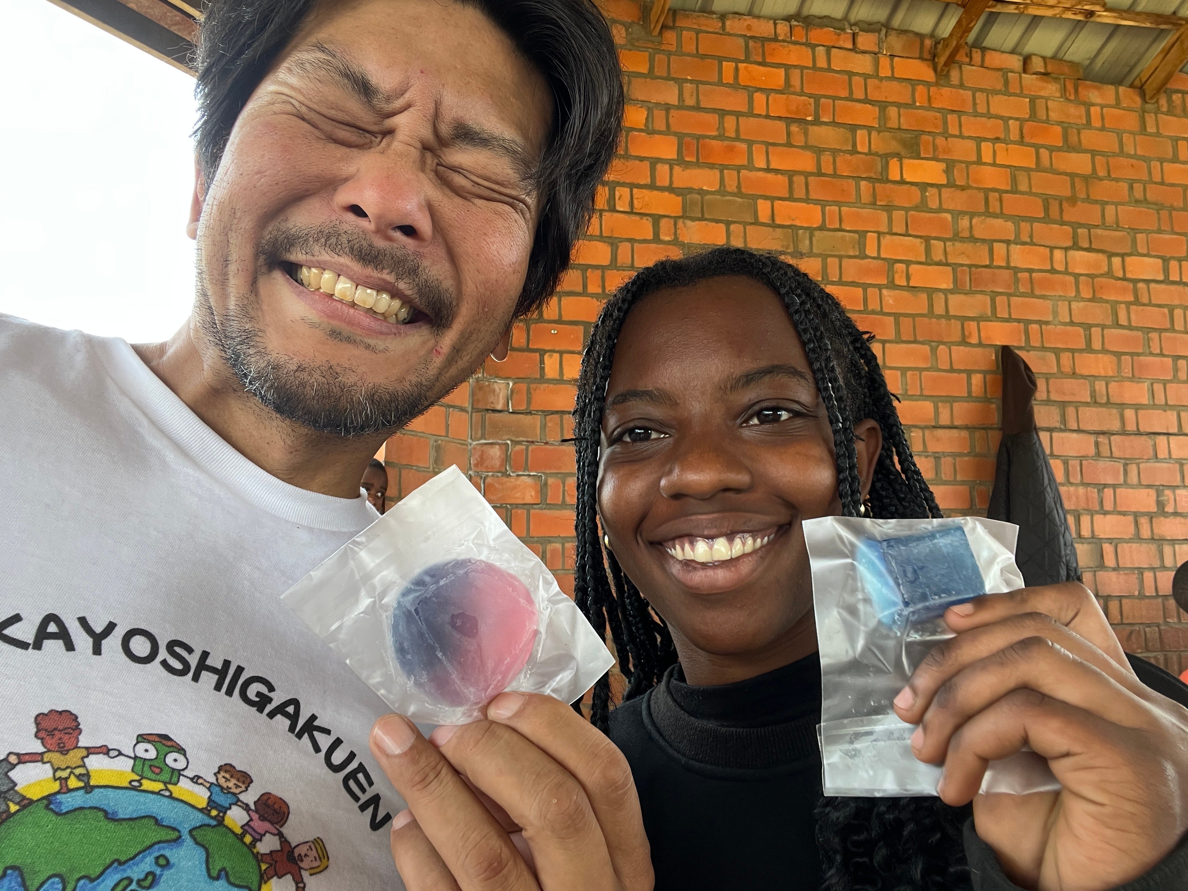 「AOGA SOAP」は、児童が配合・形・使い方の工夫を重ねて完成させた学校発の石けんです。ルワンダでは首都キガリを拠点とする若者たちの居場所支援団体African Mirror、キガリ市内の小学校KIBAGABAGA SCHOOLと協働し、手洗い授業を実施。子どもたちは楽しく学びながら衛生の大切さを体験し、同校からの石けん提供と学びのメッセージが現地の実践へとつながりました。