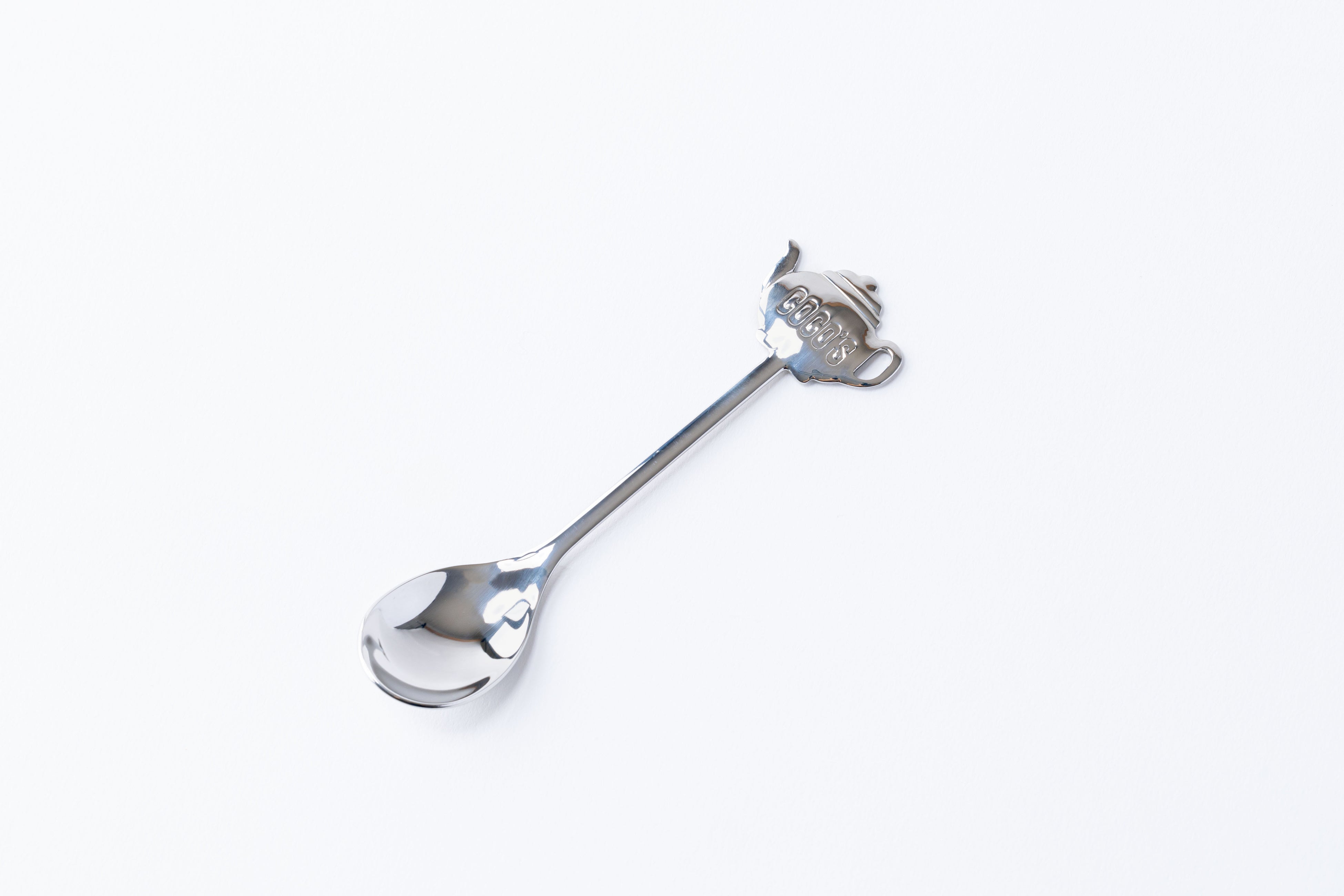 ココスのロゴがあしらわれた、ティーポットデザインの持ちやすい柄が特徴的なティースプーン。