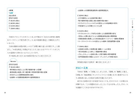 AI初心者でも安心の基礎知識から、コンサルタントならではの応用テクニックまで網羅。さらに、「コピペするだけで使えるプロンプト集」が読者特典として付属します。本を開いたその日から、すぐに実務で活用できます。