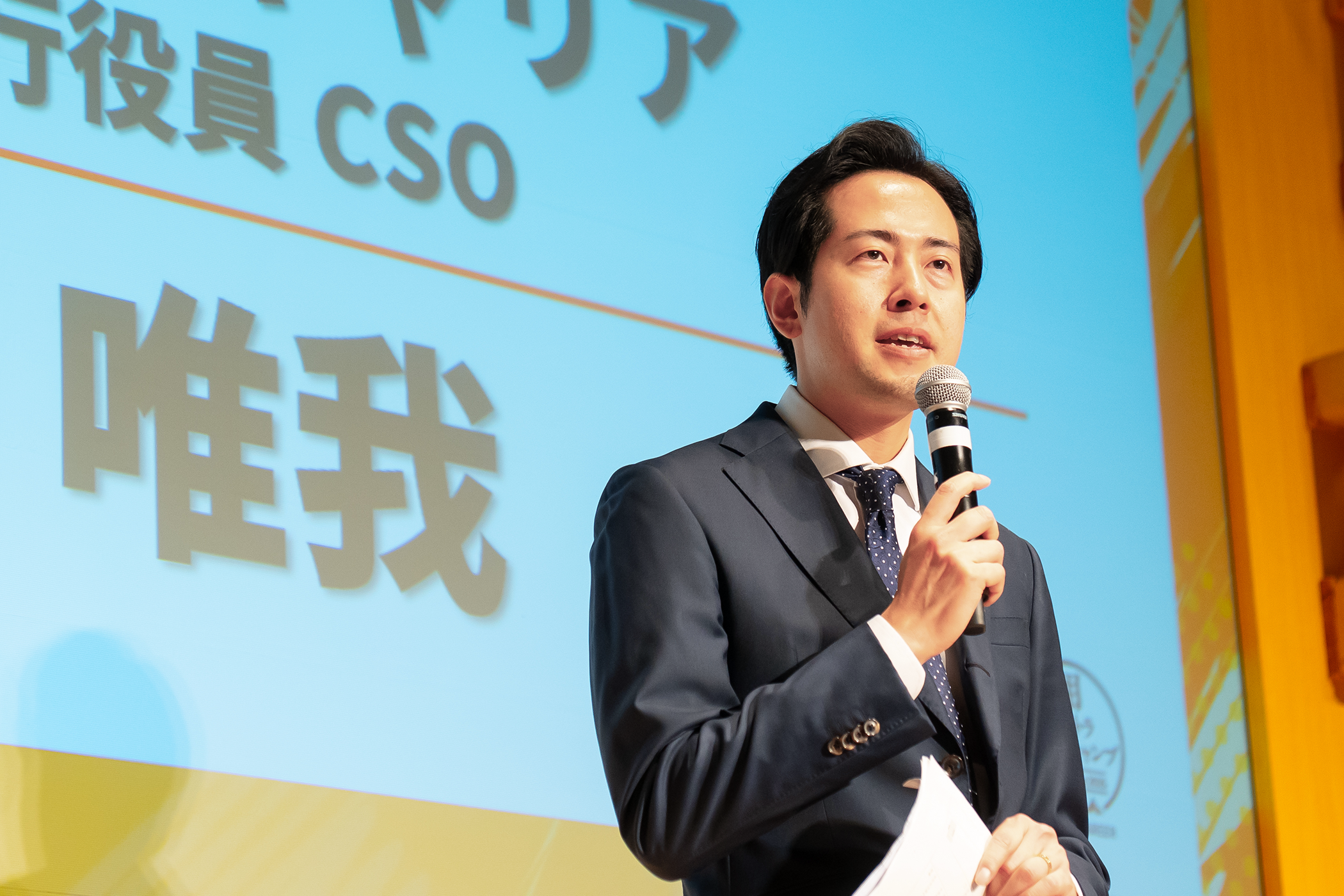 主催社挨拶を行ったのは当社取締役 執行役員CSOの北野 唯我です。「日本の採用支援を牽引する皆様と、伝統と革新がクロスするこの京都で一堂に会することができて非常に嬉しく思っています」と来場者への御礼を伝えました。