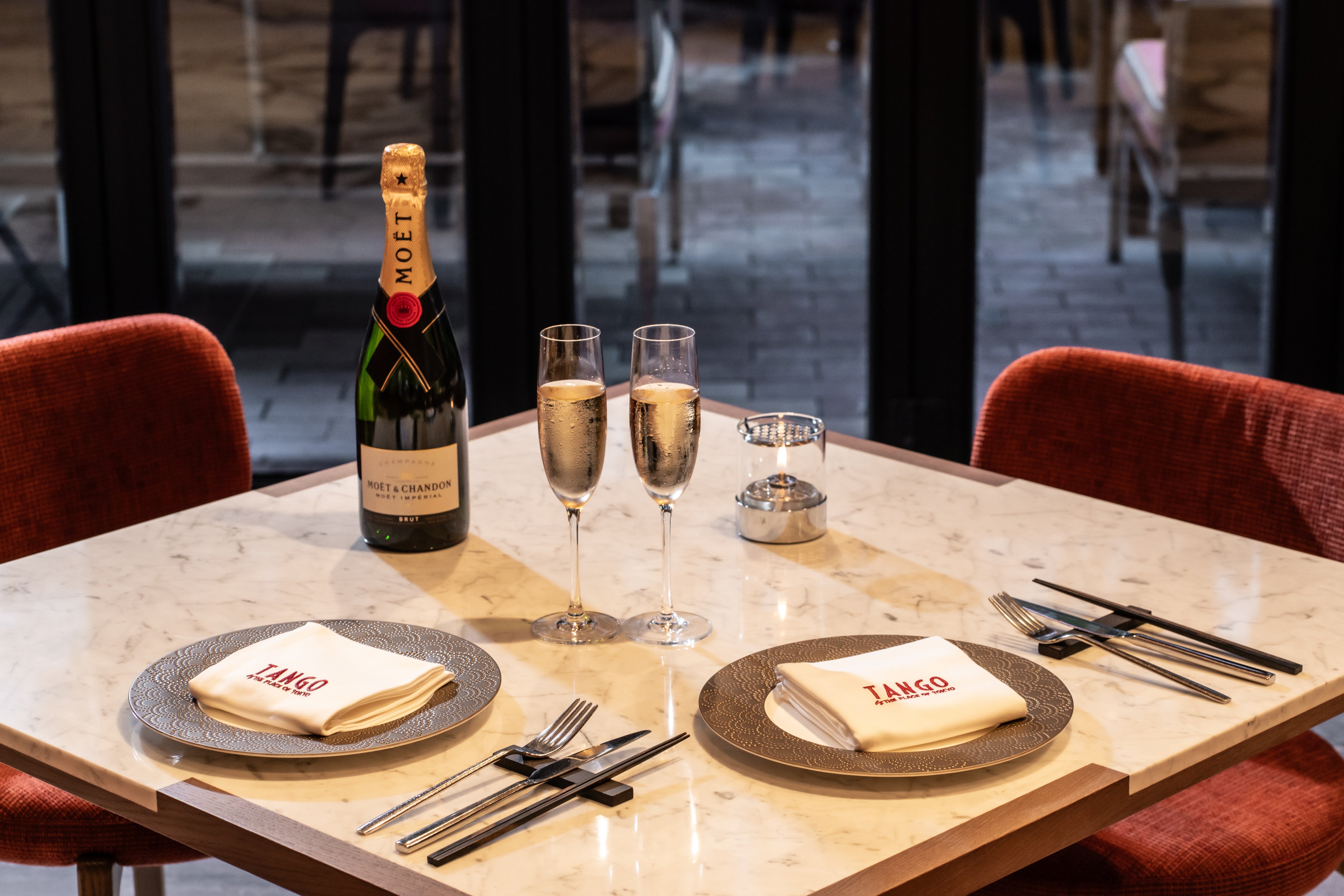 Terrace Dining TANGOは東京タワーの目の前という抜群のロケーションを誇る大人気のアニバーサリーレストランです。大手口コミサイトにおいて、東京都内の結婚式場で9年連続料理部門第一位※の実績がある結婚式場「The Place of Tokyo」に併設されており、クリスマスディナープランは婚礼メニューを手がけるグランシェフ監修のもと、魚料理と肉料理、2つのメインディッシュを揃えた贅沢なフルコースをご用意しました。一部の日時では、普段は結婚式でしか入れない人気の披露宴会場でお食事をお楽しみいただけます。期間中はすべての会場でジャズの生演奏も実施いたします。