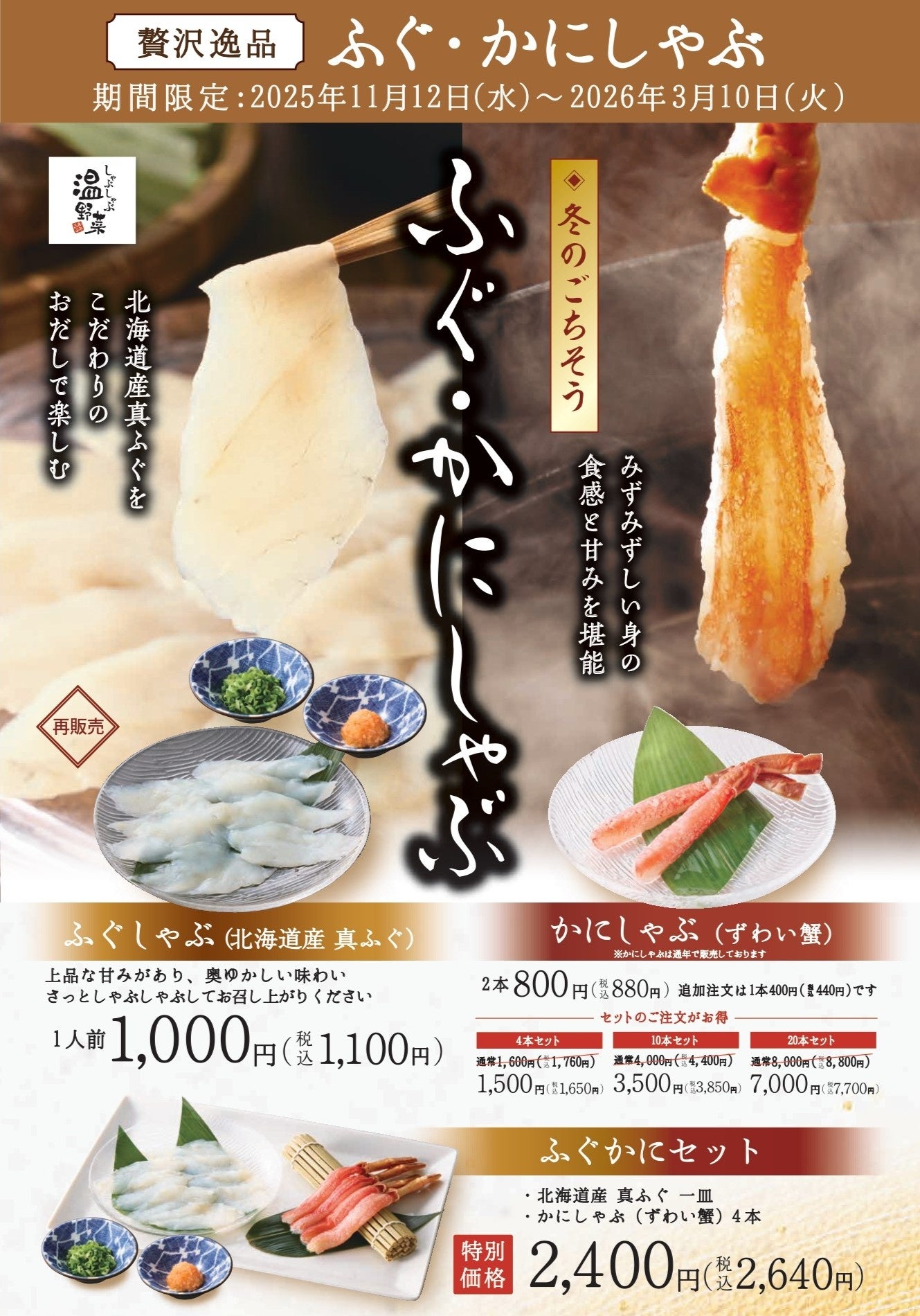 2025年11月12日(水)より「ふぐしゃぶ」「ふぐ&かにセット」を販売開始