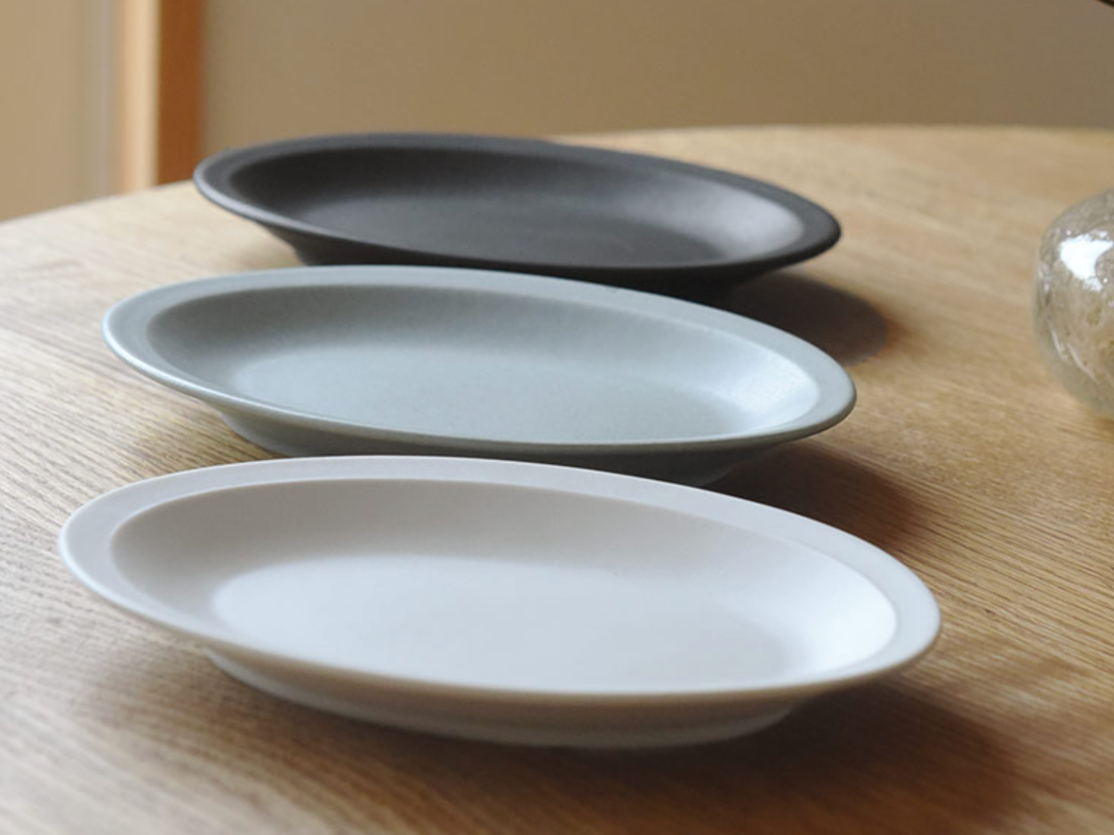 岐阜県土岐市駄知町で創業した、70年程の歴史あるメーカー東峰窯(とうほうがま)でつくられた、bon momentネームのオーバルプレートが登場。