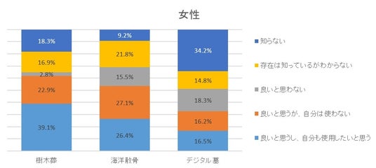 ◇今回調査した新しい供養のかたちの何れも、男性と比較し、女性の方が好意的な回答が得られている。
