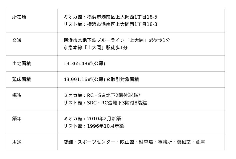 ※ミオカ館に含まれる住宅棟は対象外となります。また、保有対象には区分所有権(持分比率約81%)ならびに他の地権者と共有する一部区画にかかる準共有持分(持分比率約39%)が含まれます。