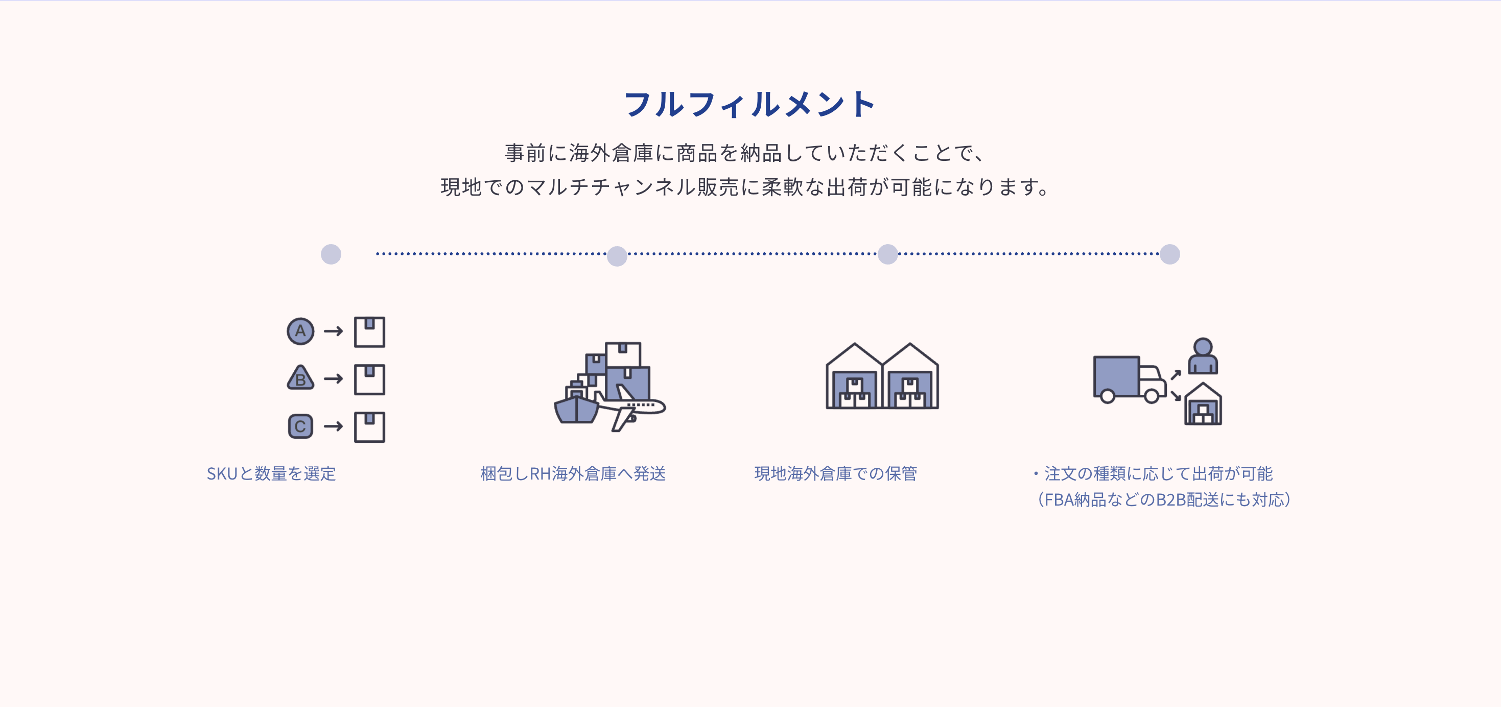 - 米国現地倉庫での受注・保管・出荷まで対応するフルフィルメント機能