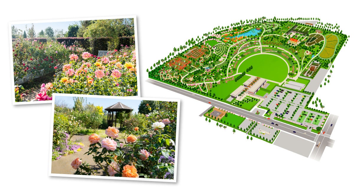 神奈川県立 花と緑のふれあいセンター『花菜ガーデン』は、2010年3月にオープンした施設です。バラをはじめ、ハナモモ、サクラ、クレマチスなど、四季折々の花が展示された「フラワーゾーン」、田植えや野菜の収穫体験の場となる「アグリゾーン」、展示室やライブラリーなどを備え、植物についての知識が深まる「めぐみの研究棟ゾーン」の3つのエリアで構成されています。富士山が一望できるビューポイント「みはらしデッキ」も人気です。約9.2ha(横浜スタジアムの約3.5倍)の開放感あふれる園内で、季節の花と緑をお楽しみいただけます。