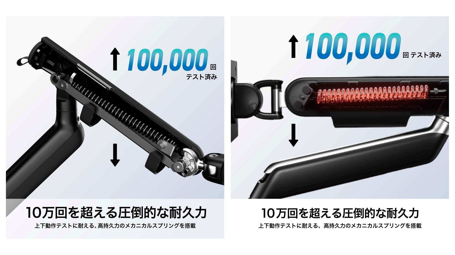 10万回を超える上下動作テストをクリアした、高い持久力、安定性を持つメカニカルスプリングを搭載し、長期にわたり安定した動作を維持します。