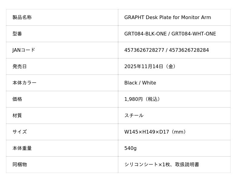 『GRAPHT Desk Plate for Monitor Arm』製品ページ