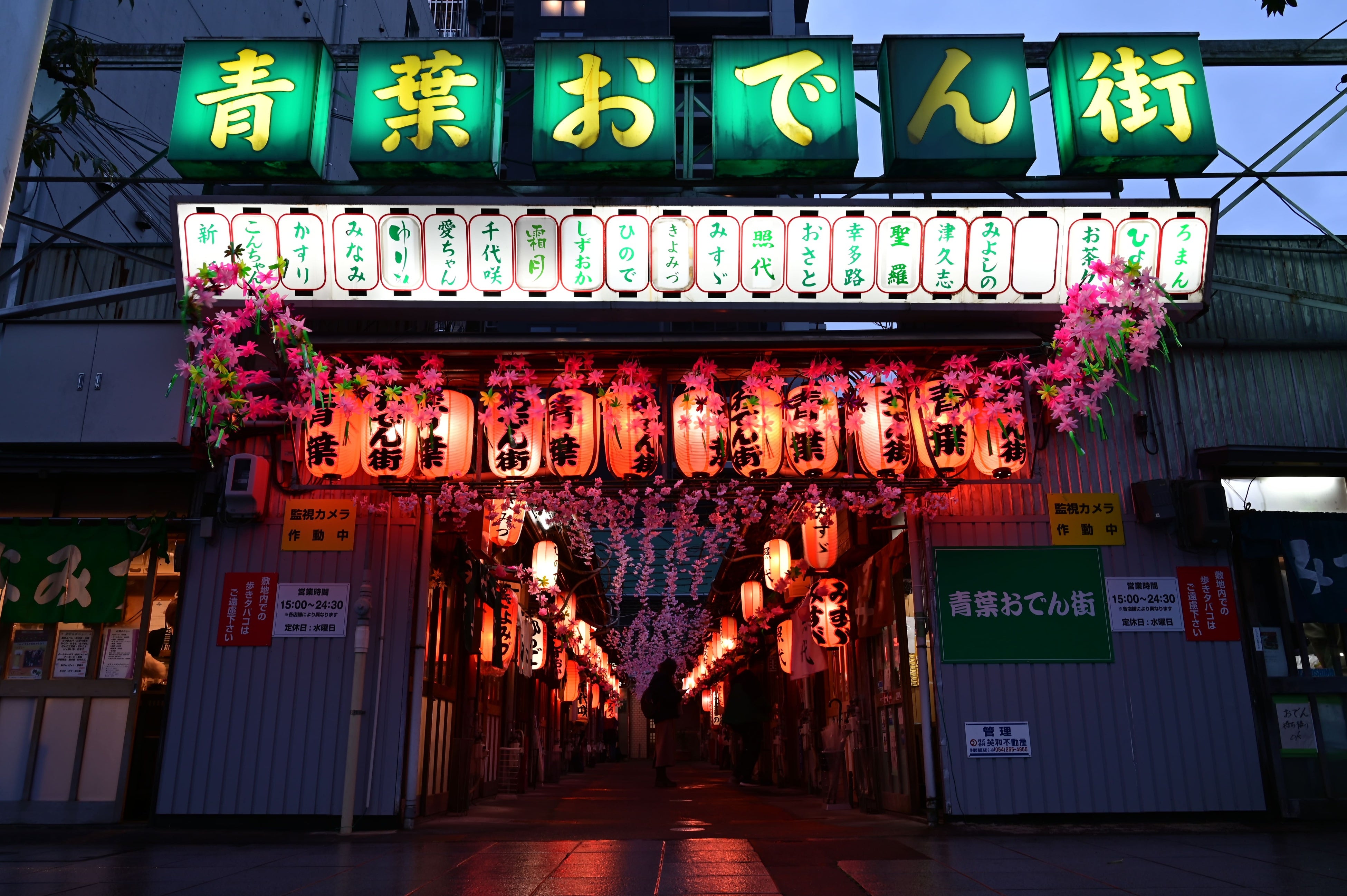 ●青葉おでん街・青葉横丁青葉シンボルロードに隣接する飲食店街で、「青葉おでん街」と「青葉横丁」のふたつの横丁が道路を挟むように位置しています。歴史ある静岡グルメ「静岡おでん」をはじめとした地元グルメを求め、地元市民や観光客など多くの人が訪れます。「青葉おでん街」は、入口から通路奥まで統一感のある赤提灯や装飾等、艶やかでフォトジェニックな景観です。「青葉横丁」は全体的にほの暗さが残り、歴史の深さやレトロ感を存分に感じるノスタルジックな世界観が広がっています。視覚で楽しんだ後は、嗅覚や味覚でも静岡の夜を存分に楽しめます。
