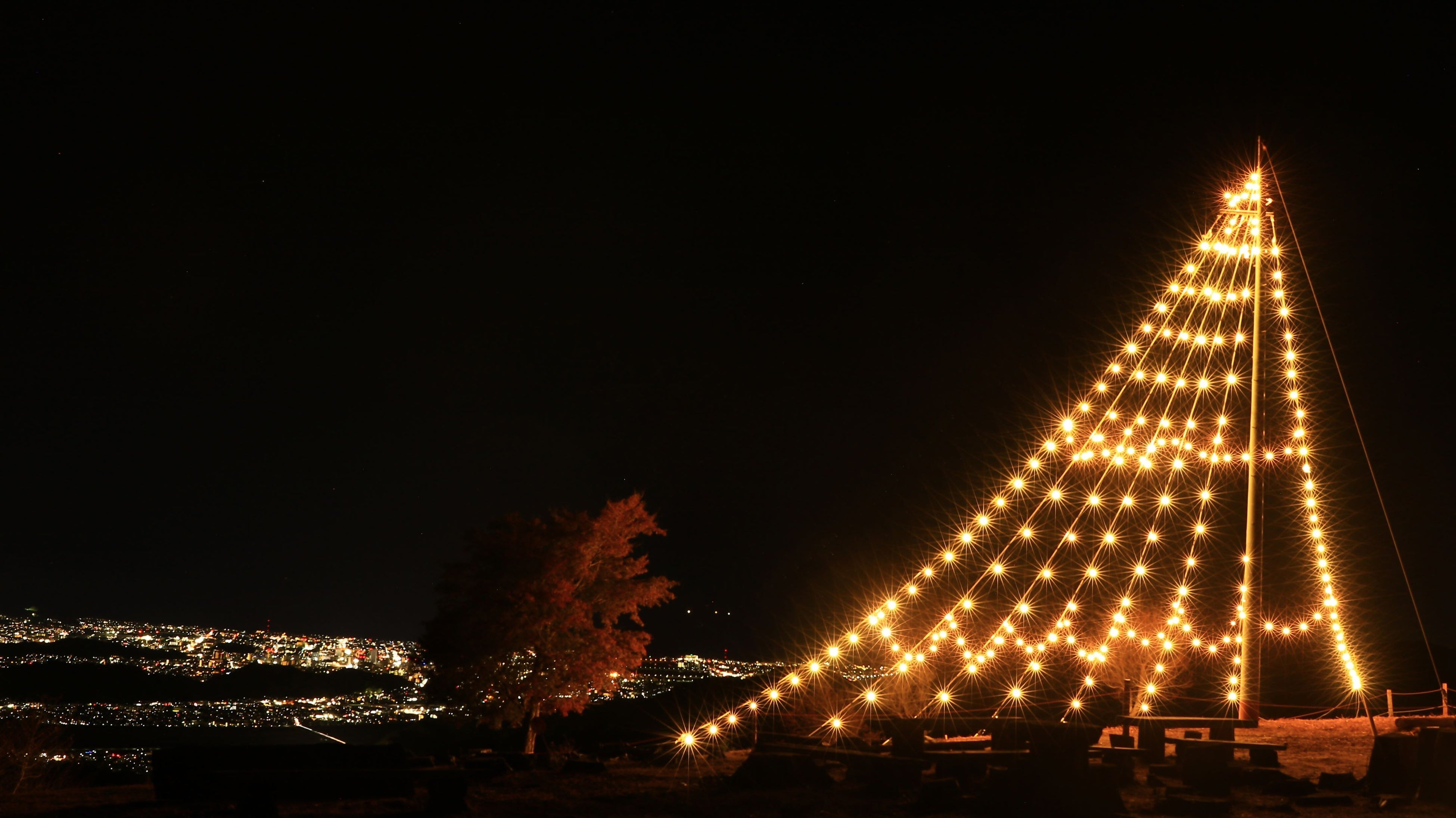 高山市民の森は、四季折々の自然に触れながら森林浴を楽しむことができる自然施設で、山頂近くの展望台からは絶景の眺めを見ることができます。さらに、12月は期間限定で夜間のクリスマスツリーのライトアップが行われます。静岡市内のほぼ全域が見渡せる高山・市民の森の山頂で、知る人ぞ知る夜景を楽しめます。