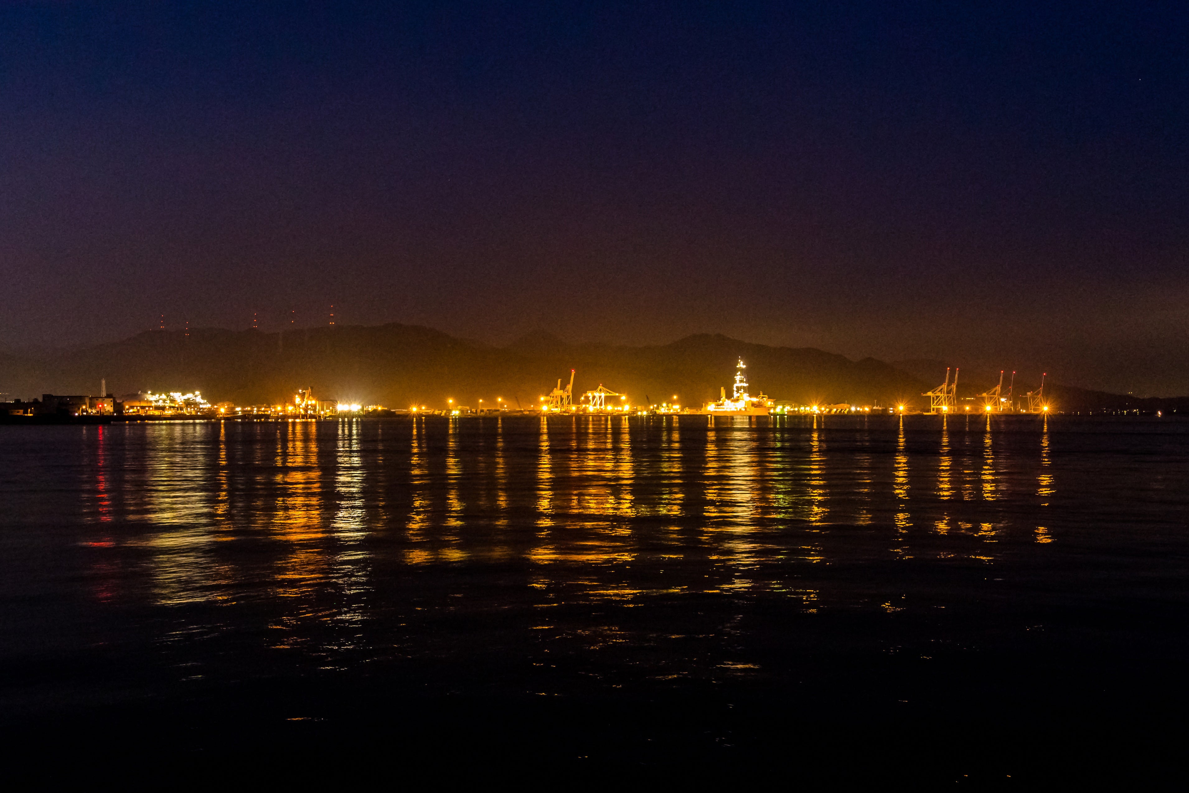海岸沿いに開けたスペースがあり、且つ海に面しているため、車中からの夜景鑑賞が可能。夜景はオレンジ色のナトリウム灯が広がる対岸の興津埠頭を中心に、地球深部探査船「ちきゅう」の寄港時には、「光の城」のようにシンボリックに輝く姿が印象的です。