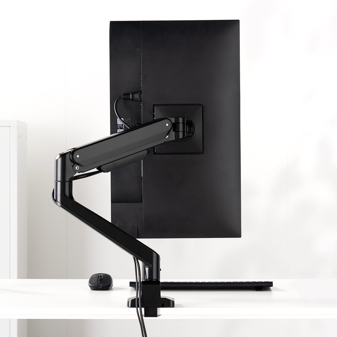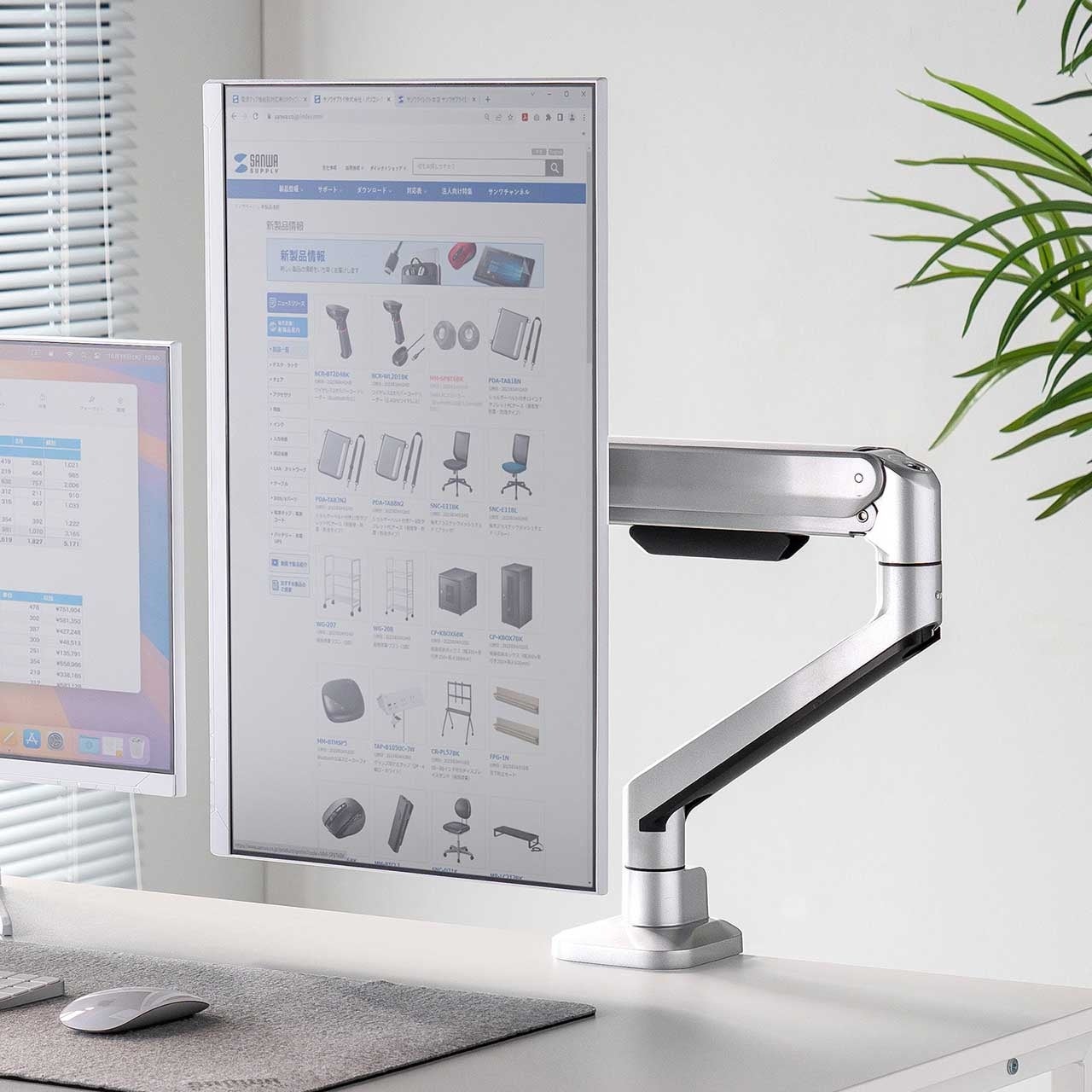 本製品は、メカニカルスプリング内蔵で、片手で軽く動かしてもスムーズに位置を固定できるモニターアームです。