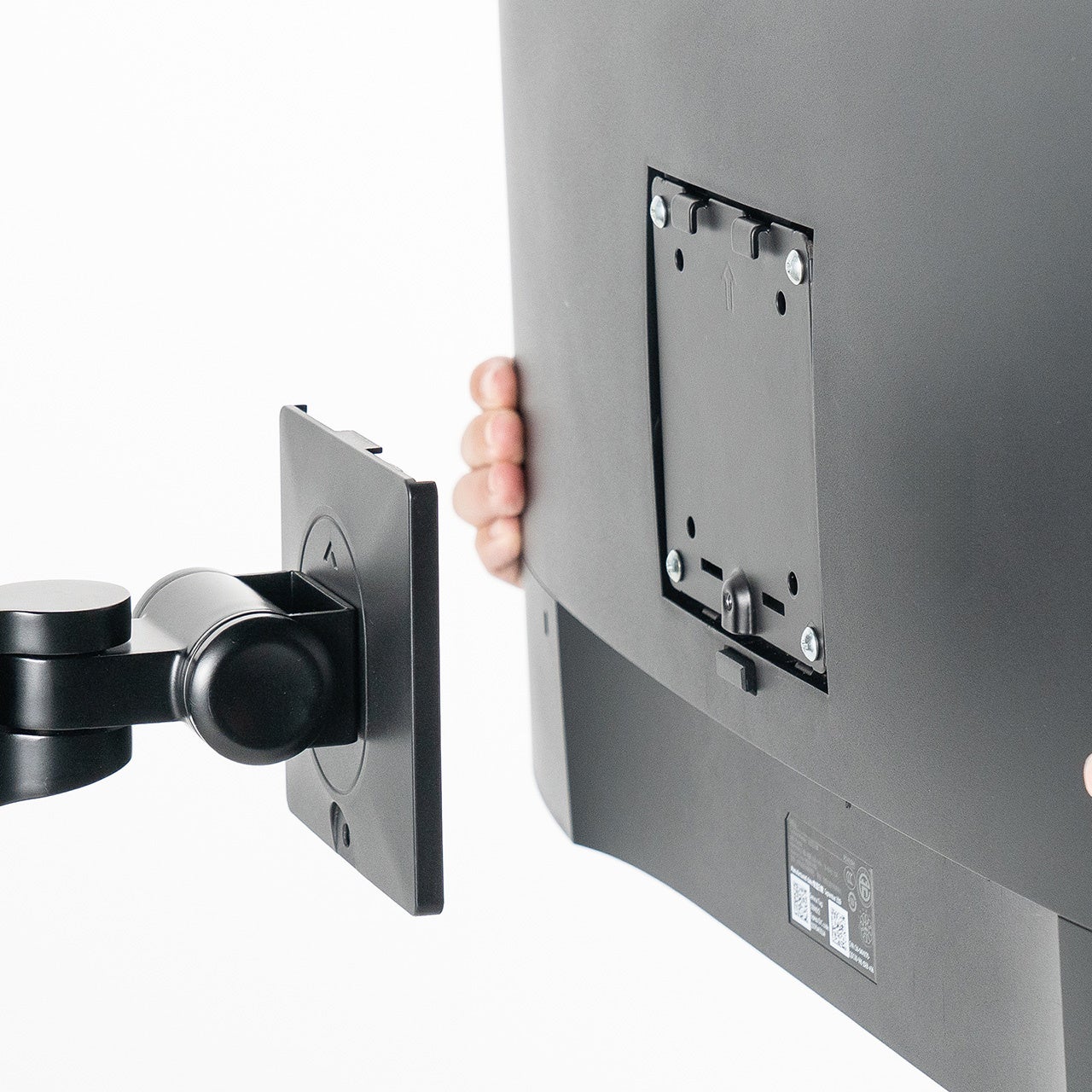クランプ部は出っ張りを抑えたスリム設計で、設置制限が少なく省スペースです。モニターの取り付けはVESA規格(75×75mm、100×100mm)に対応しています。