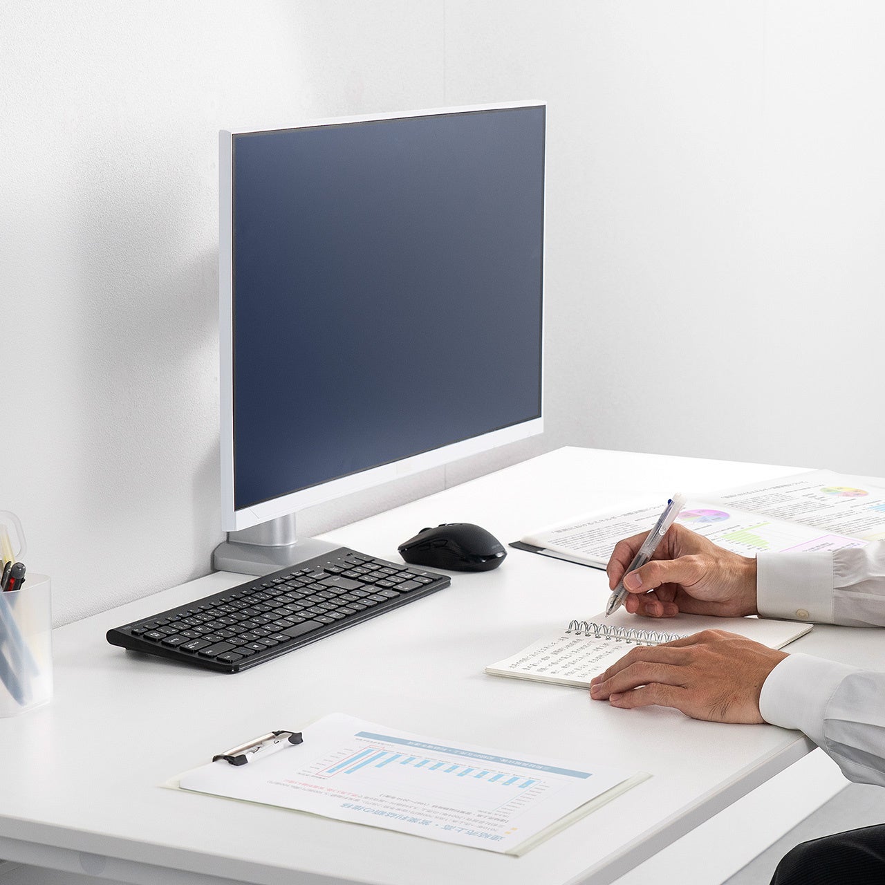 デザイン性と機能性を両立したアームで、スタイリッシュなデスク環境を演出します。