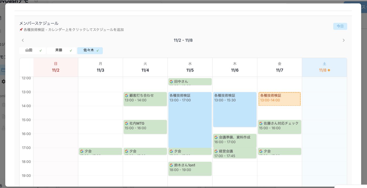 「devDash」は、従来の管理ツールではうまく解決できなかったマネジメントの課題にフォーカスしています。時間軸とともにタスク管理を行うリソースカレンダーをメインの管理手法に置き、AIによる支援機能を搭載しました。まだまだ開発段階のβ版ではありますが、報告や調整といった細かな管理業務をなくし、エンジニアが本来の創造的な業務に集中できる世界を実現したいと考えております。
