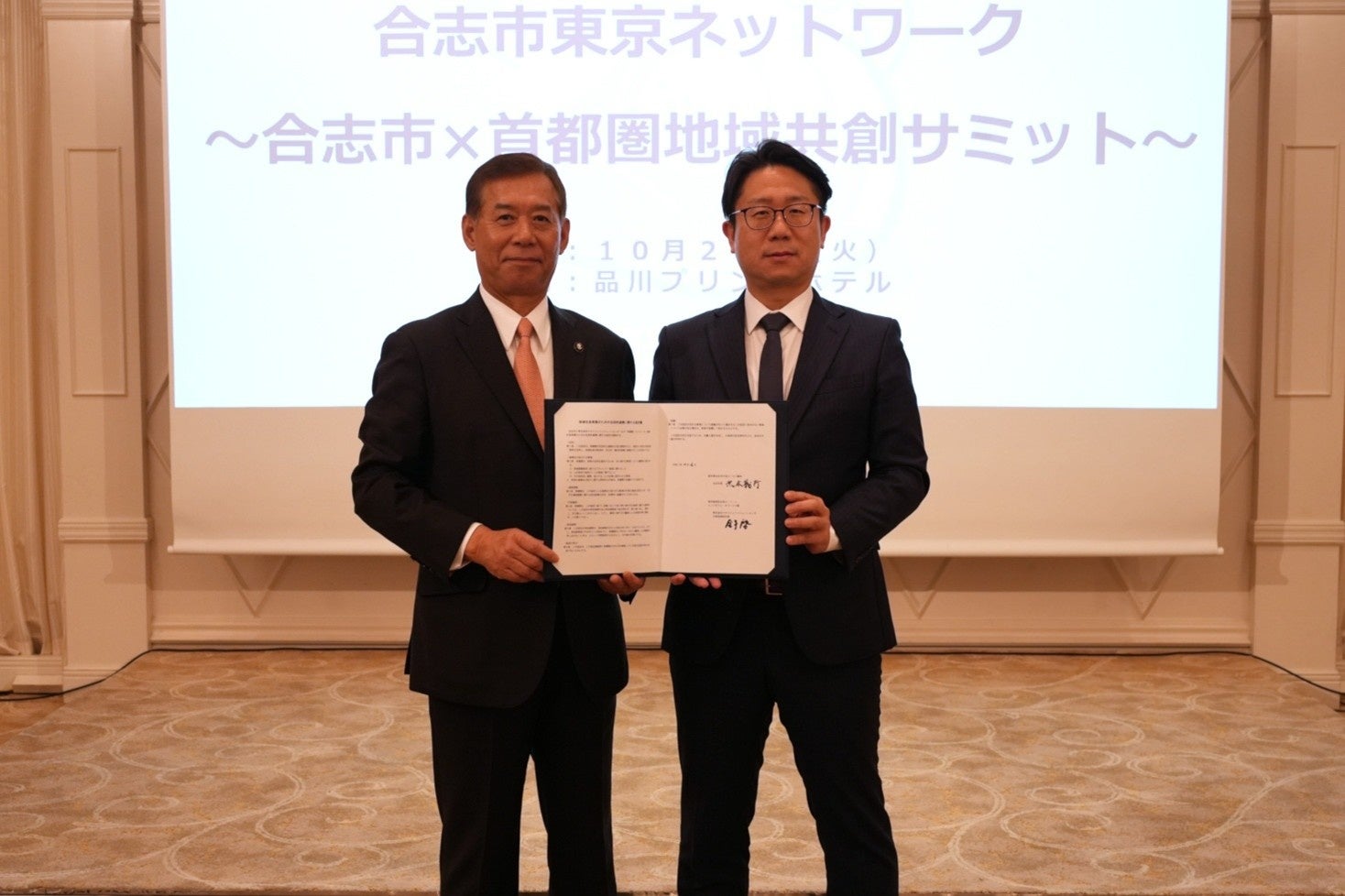 10/28開催「合志市東京ネットワーク」にて 左:合志市 荒木義行 市長 右:MSOL 代表取締役社長兼CEO 金子啓