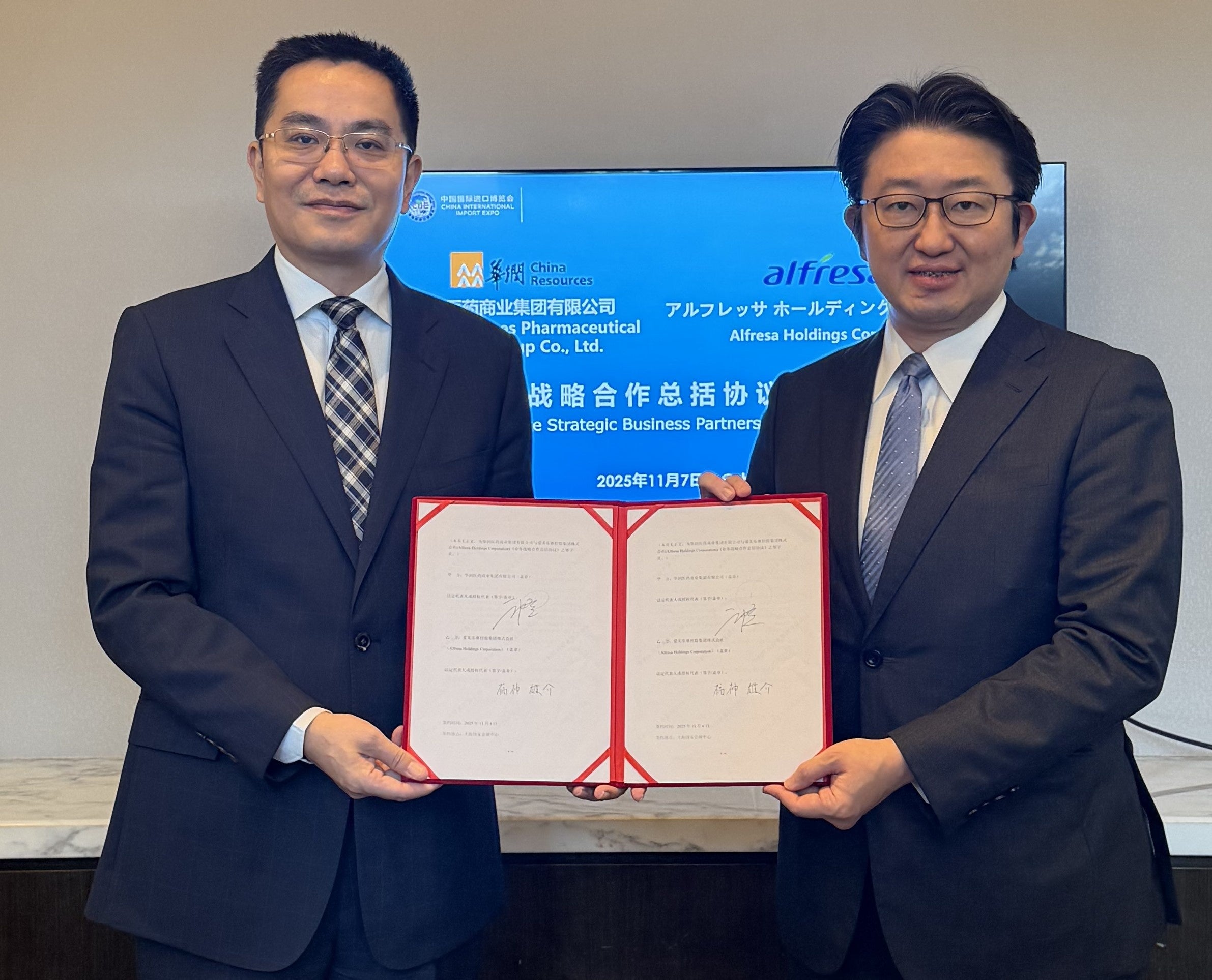 当社は、中国における「大湾区医薬品・医療機器革新開発計画」をはじめとする医療特区・特別輸入制度の活用を通じて、日系製品の中国導出を支援することを目的に、中国の大手医薬品卸売企業である華潤医薬商業集団有限公司(本社:中華人民共和国北京市、総経理:郭霆、以下「華潤医薬商業」)との間で、発展的な戦略的業務提携に関する合意書を締結し、2025年11月6日に両社による合意書の調印式を行いましたので、お知らせいたします。