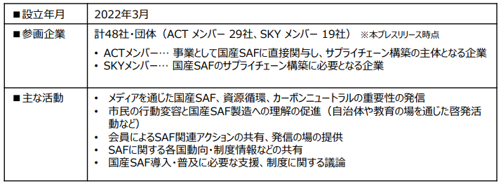 国産SAFの普及・拡大に取り組む有志団体「ACT FOR SKY」に加盟しました