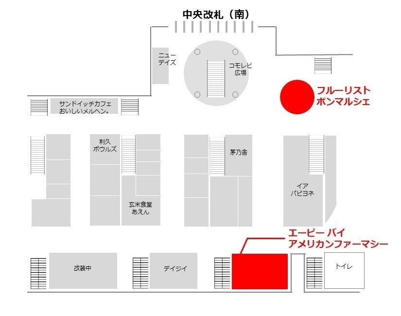 なお、エキナカ商業施設「エキュート大宮」において、新ショップが続々オープンいたします。12月1日(月)にはエキナカ初出店となる「フルーリストボンマルシェ」が新規オープンし、12月18日(木)には「エーピー バイ アメリカンファーマシー」がリニューアルオープンいたします。変化を続けるエキュート大宮に、どうぞご期待ください。