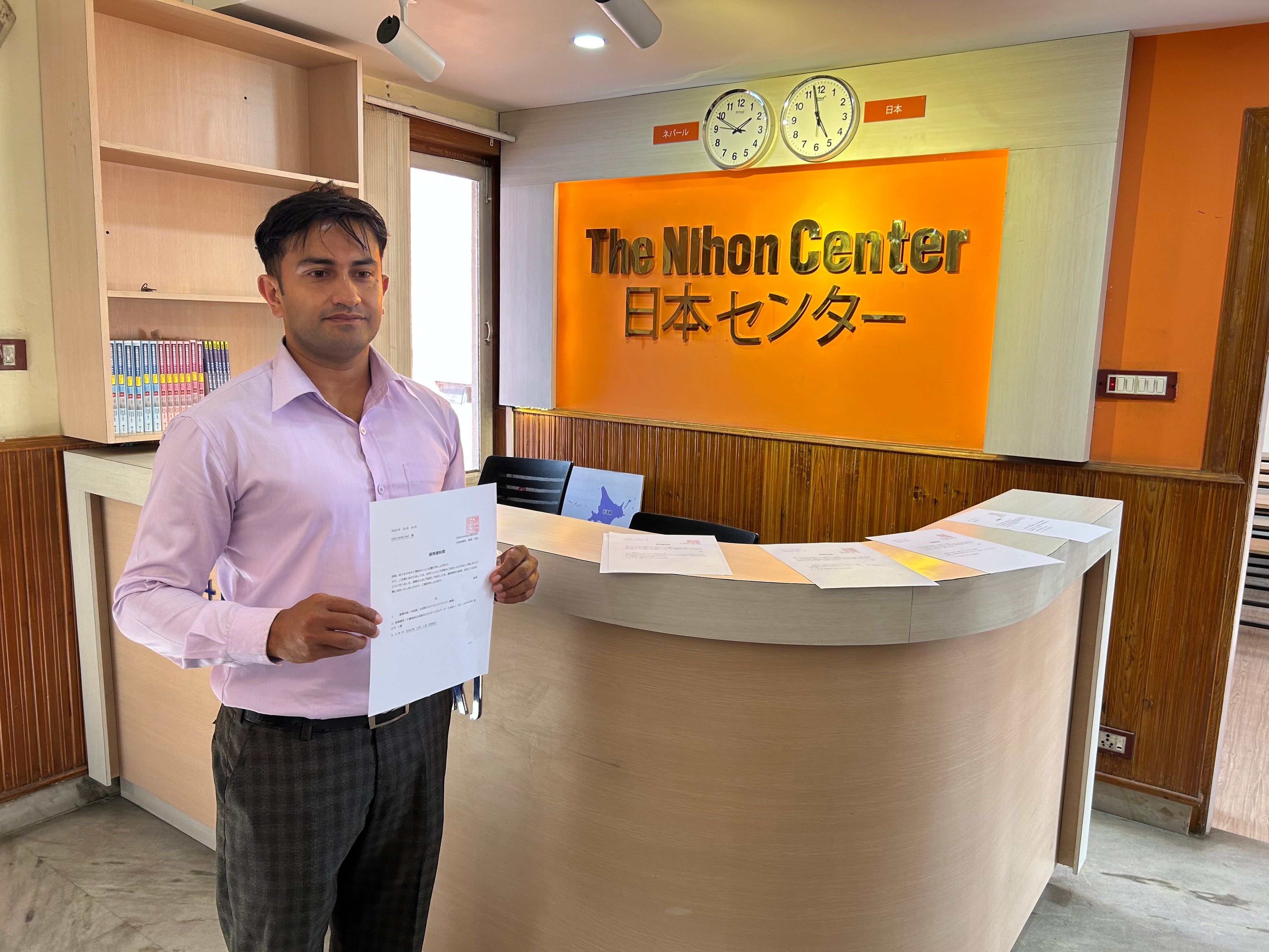 (内定通知書を受け取るGIRI MANI RAJさん)