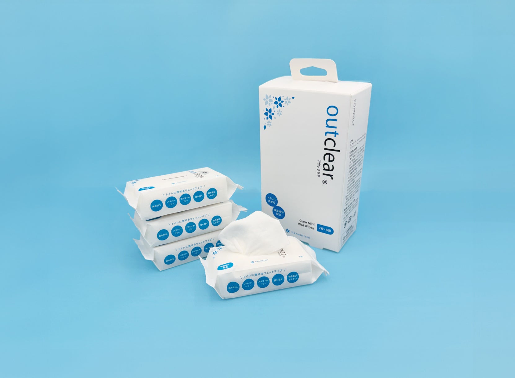 トイレに流せるミニ ウェットワイプ「アウトクリア」