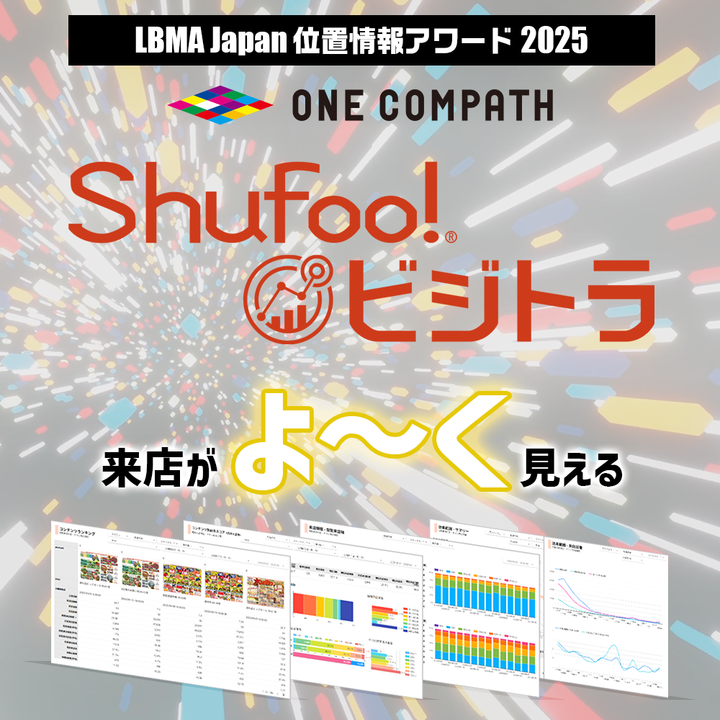 「Shufoo!ビジトラ」は、従来の販促マーケティング市場において効果測定が困難だったチラシ施策の来店と効果を可視化する分析サービスです。