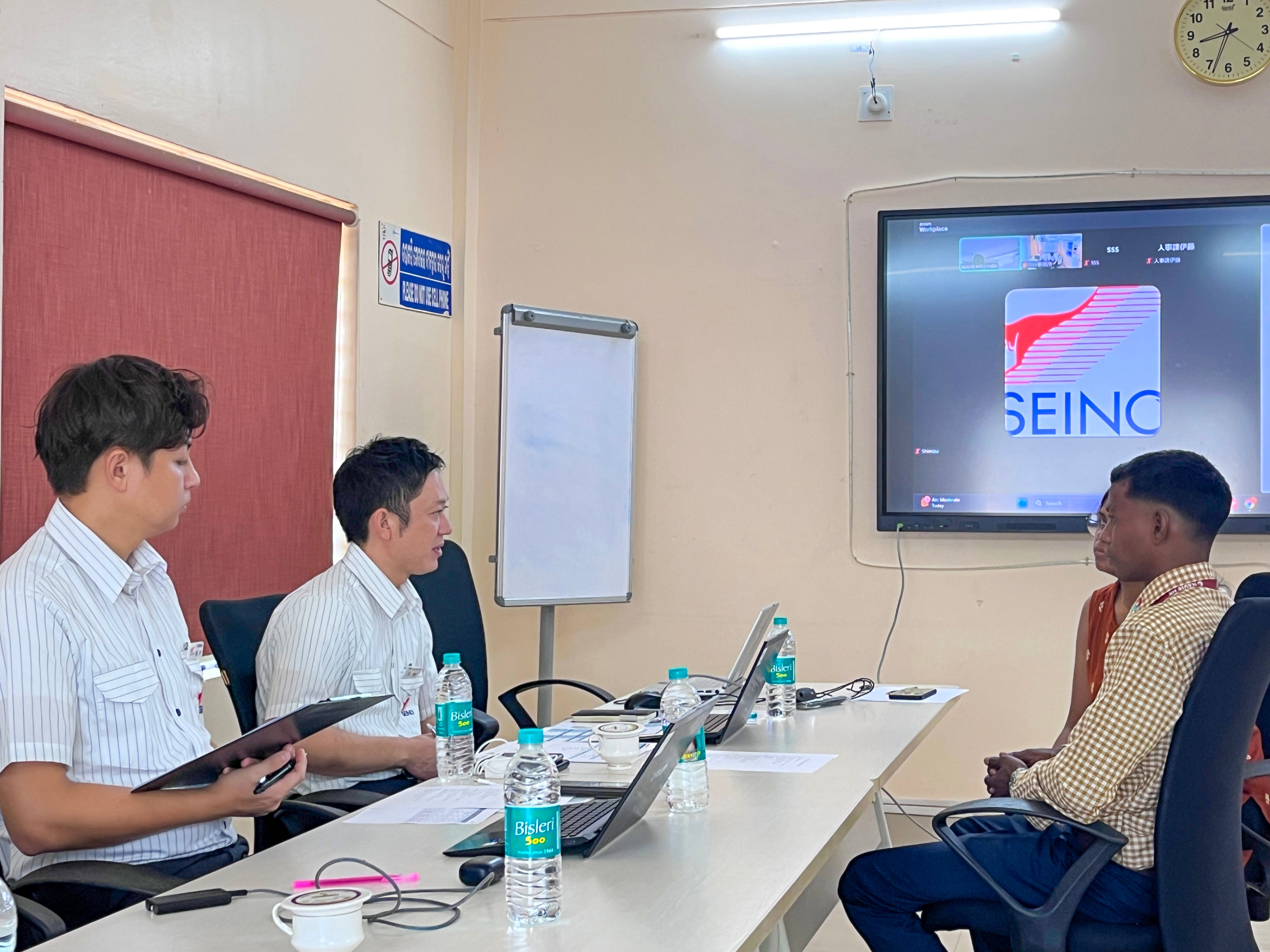 現地採用イベントの様子(2025年10月14日 オディシャ州)セイノースタッフサービスが日本とインドをオンラインでつなぎ、同時面接を実現。緊張感の中にも和やかな雰囲気が生まれ、生徒たちは人生を決める大切な機会に挑み、自らをアピールしました。