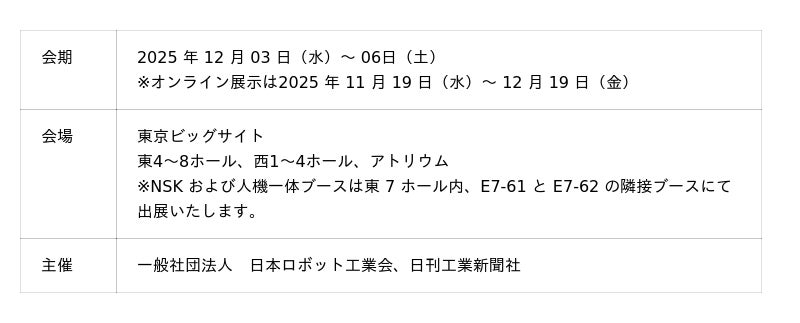 ※NSK の「PalGo 高荷重タイプ」以外の iREX2025 展示内容については後日改めてお知らせします。