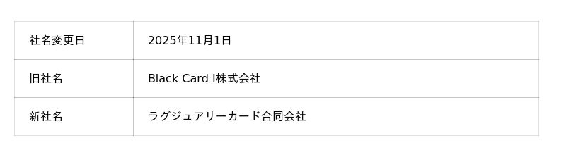 Black Card I株式会社、「ラグジュアリーカード合同会社」へ社名変更のお知らせ