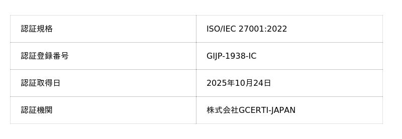 nocall株式会社(本社:東京都品川区、代表取締役CEO:林 正悟)は、情報セキュリティマネジメントシステム(ISMS)に関する国際規格「ISO/IEC 27001:2022」の認証を、2025年10月24日に取得しましたことをお知らせいたします。
