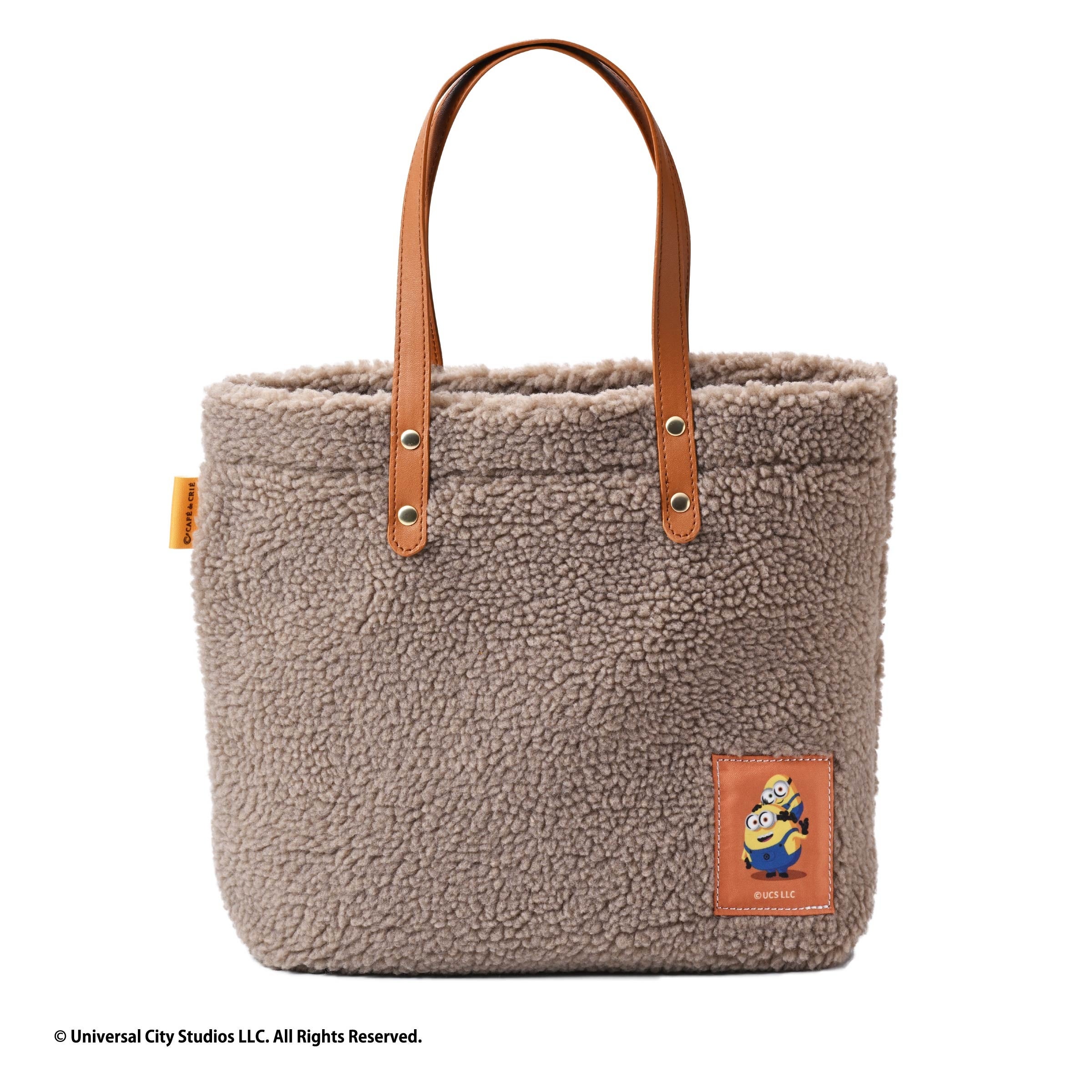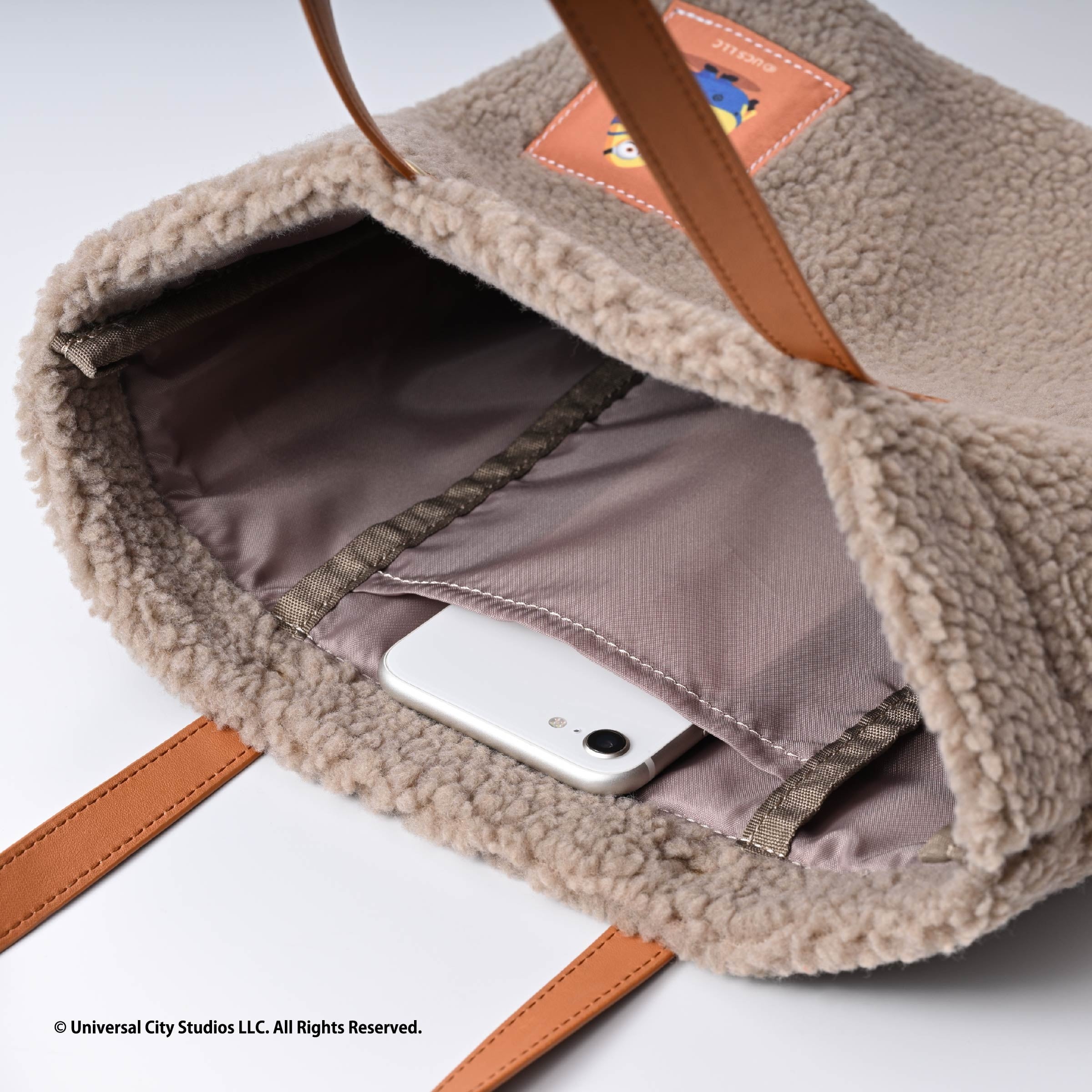 ・ミニオンの愛らしいワッペンがアクセント!ボア素材のふわもこバッグ