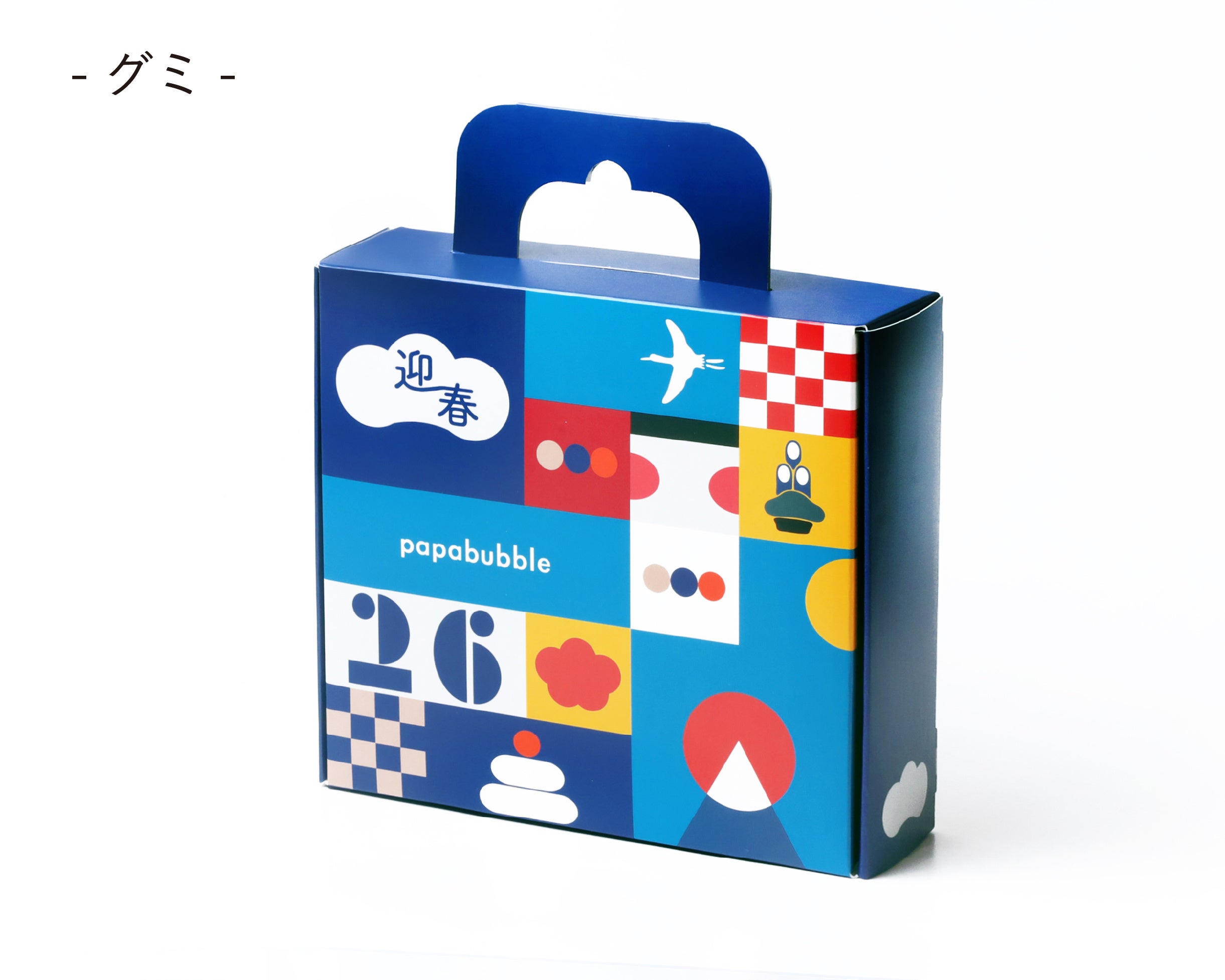 「グミ福袋」には、お正月限定「お年賀バブレッツ」やハードグミ、酸味が楽しめるアシドグミを詰め合わせた、満足感のあるセット。