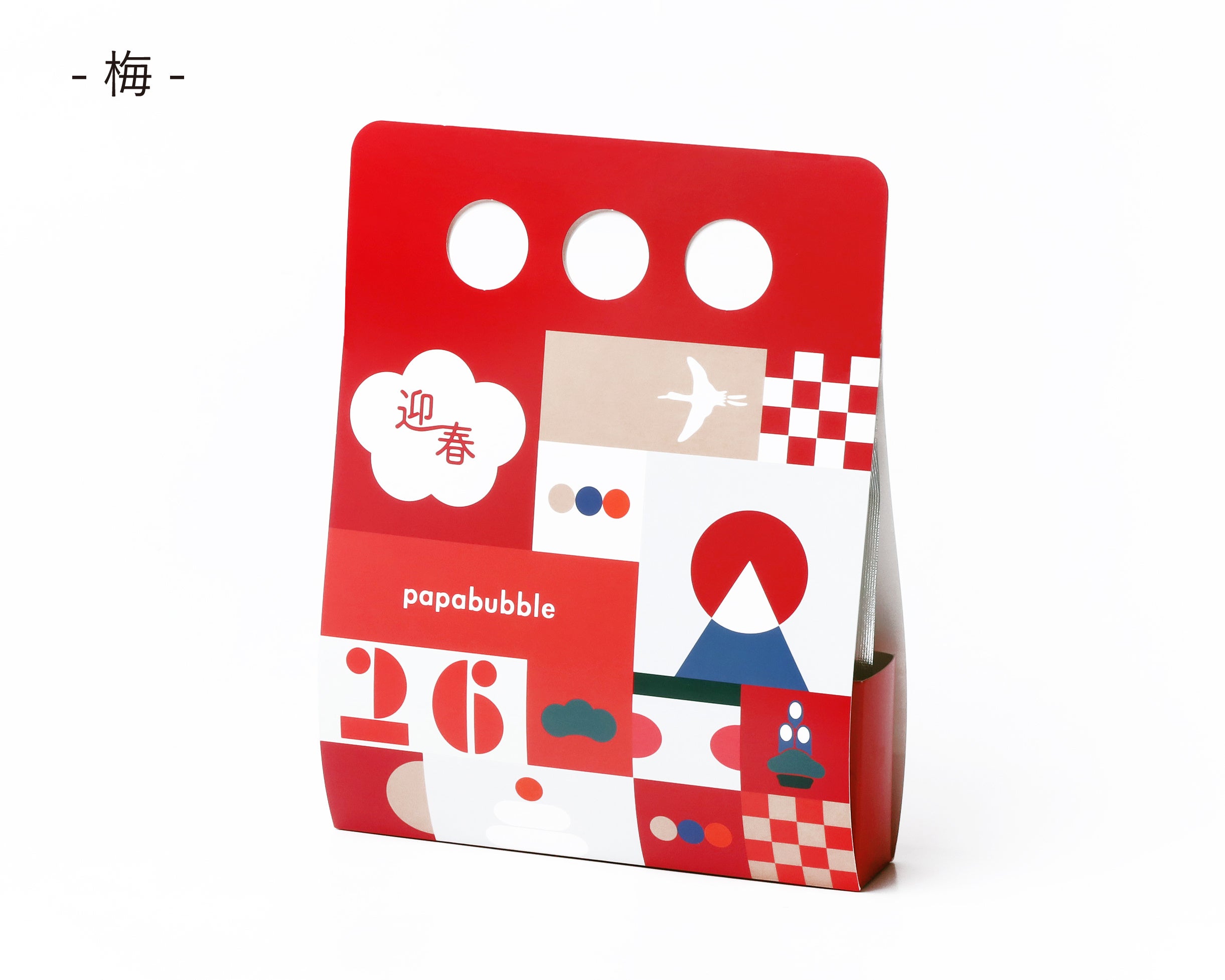 パパブブレの人気商品をお得に楽しめる3種類の福袋が登場します。キャンディ3袋が楽しめる「梅」、キャンディに加えグミも楽しめる「竹」、キャンディ・グミ・チョコレートが入った大容量の「松」をラインナップ。用途やお好みに合わせてお選びいただけます。