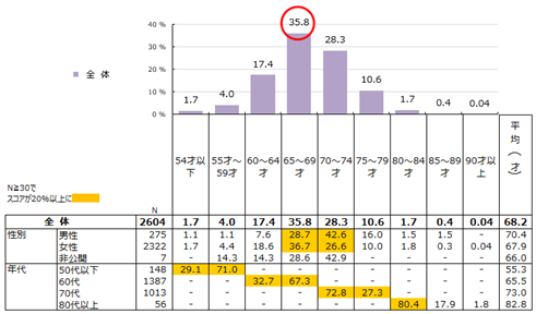 ・年代は50代から90代と幅広く、60~70代が大半を占め、60代後半(36%)がボリュームゾーン。